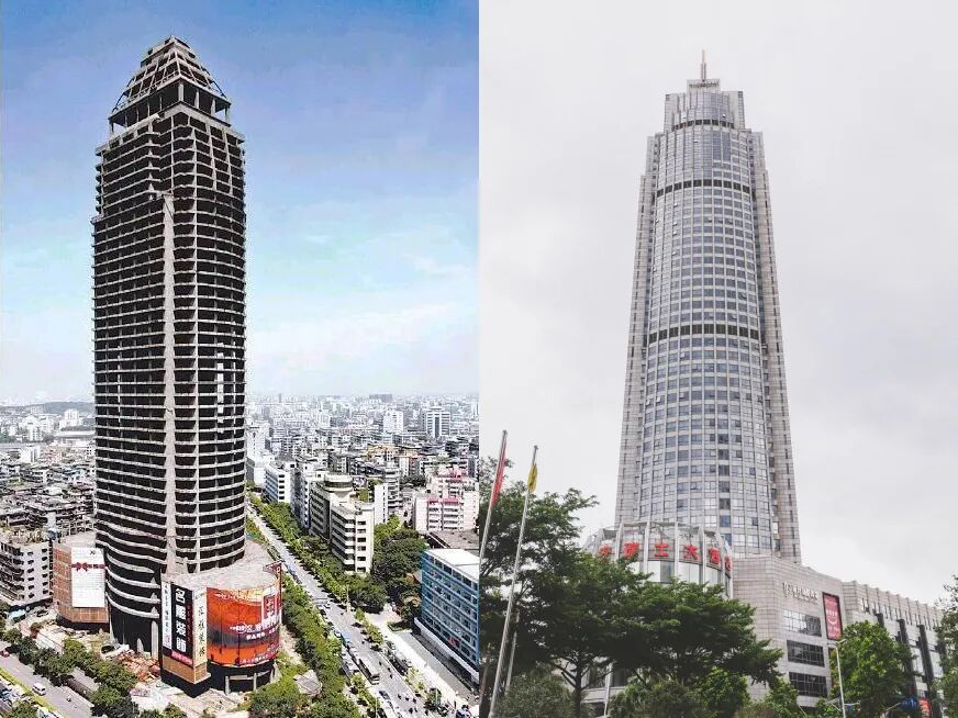 这座曾经佛山最高的烂尾楼,1992年风风火火开始动工,1997年封顶,当时的街坊都在期盼它的落成,没想到最后却烂尾收场。因为大楼四面通风,还被街坊还笑称为“四通大厦”,当年每次经过城门头,都会这栋地标式的烂尾楼历经过三次流拍的“四通大厦”,原本以为会一直烂尾下去,没想到在2008年华丽转身为恒安瑞士大酒店。