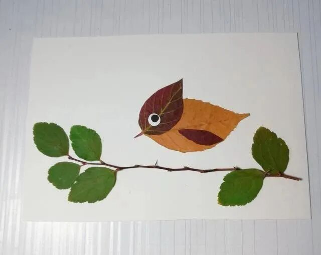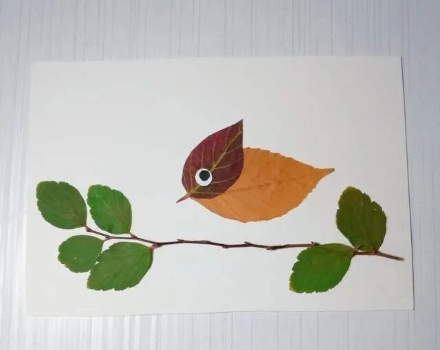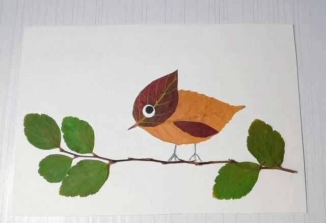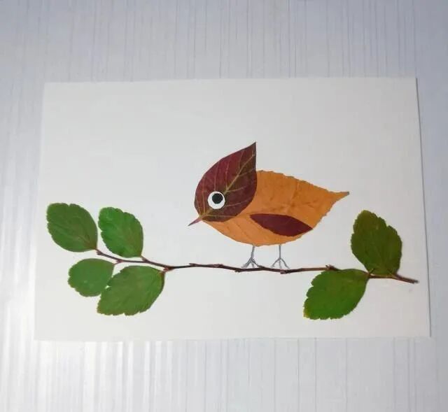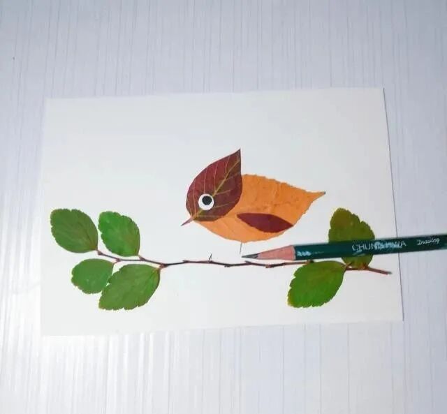下面我们就一起用叶子粘贴一个小鸟吧。