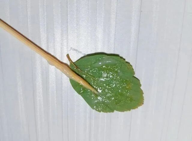 在叶子背面涂胶,见下图