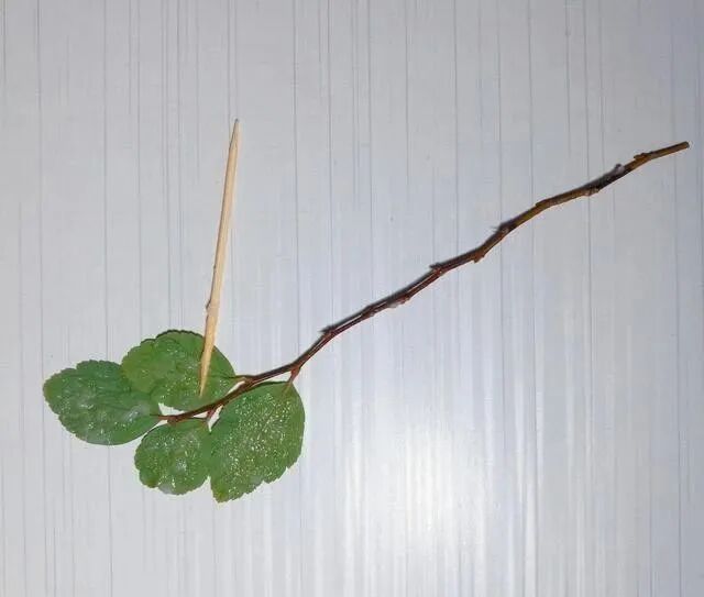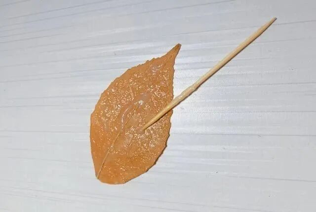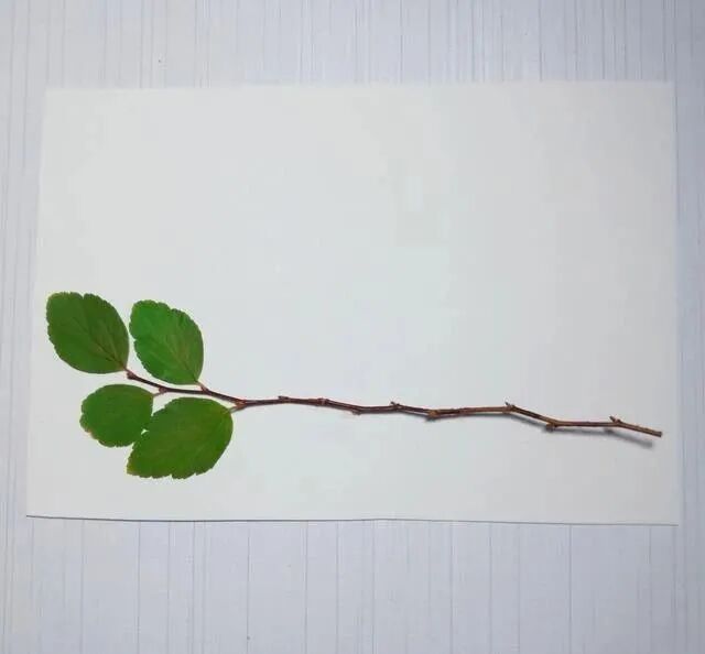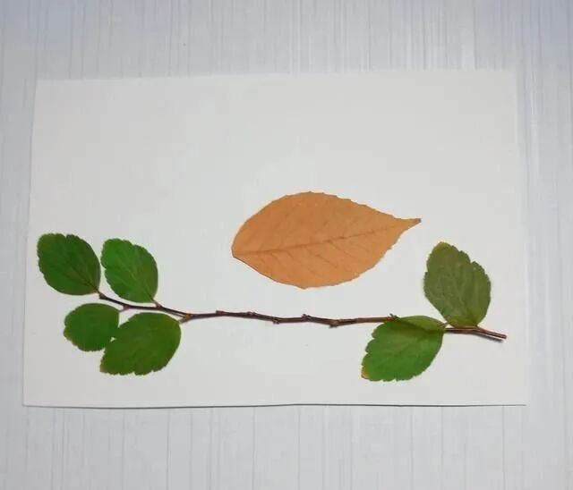 小树枝太细,不好粘贴,这两片叶子粘到上边,还能起到一个固定的作用