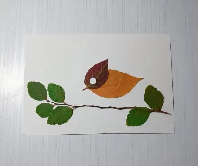 树叶小鸟贴画粘贴到纸板上,如下图所示