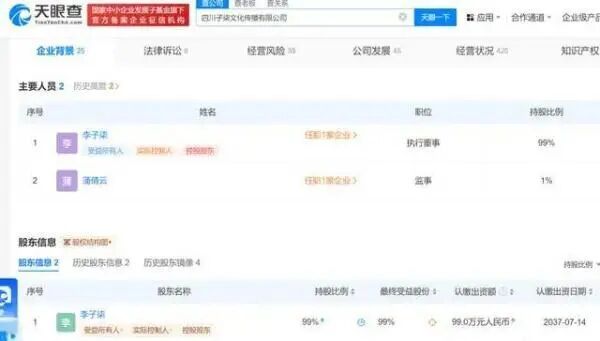不知道你是否记得这位曾经的顶流——公开资料显示,李子柒原名李佳佳,2016年她凭借其田园古风特色的视频在国内外网站迅速走红。然而坐拥近亿粉丝的李子柒,在2021年因与MCN机构(网红背后的经纪公司)产生矛盾而停更。消失800多天后,李子柒以新身份出现在公众的视野。起因是这两天,有网友在天眼查App上找到一条官方信息: