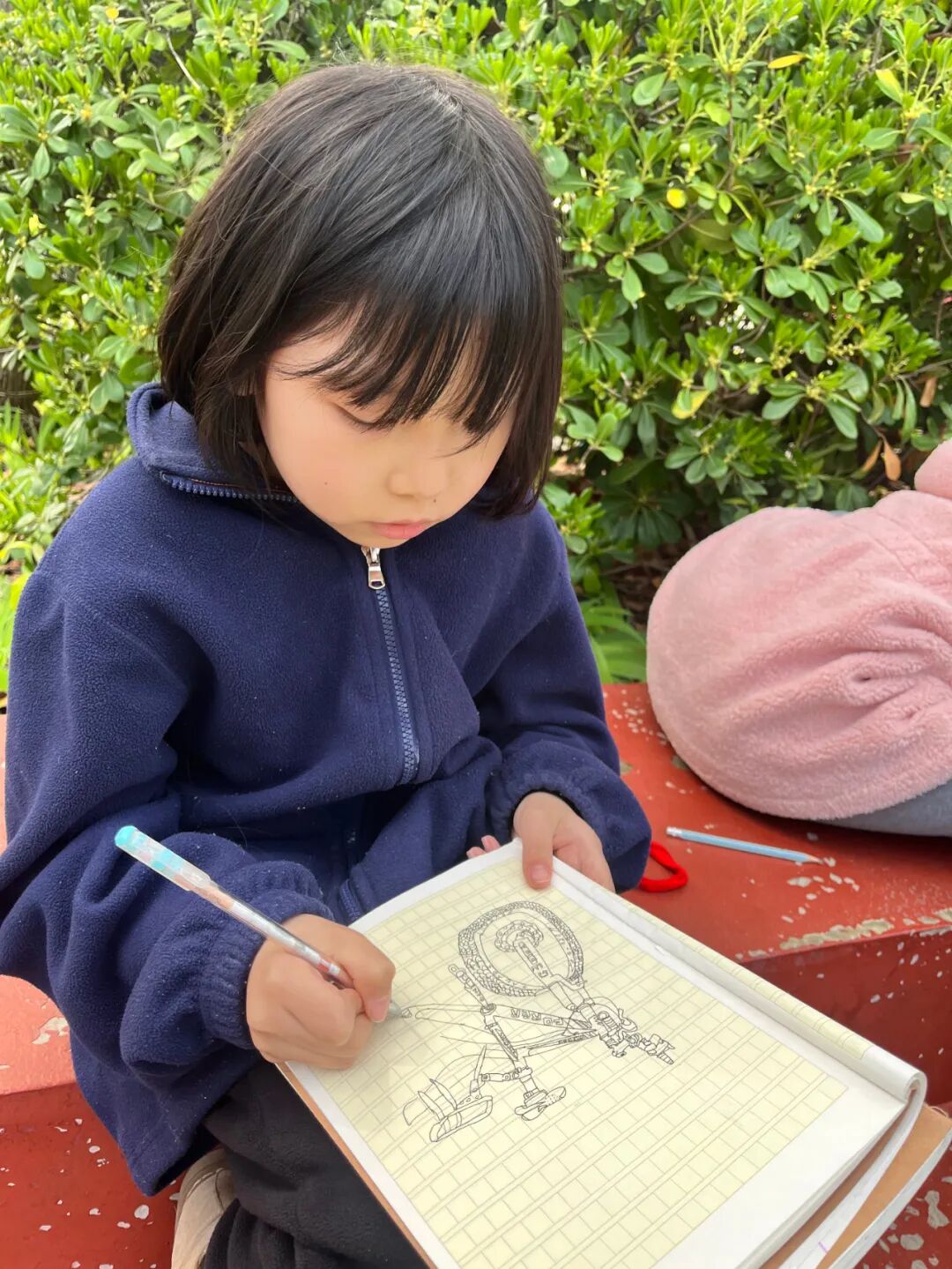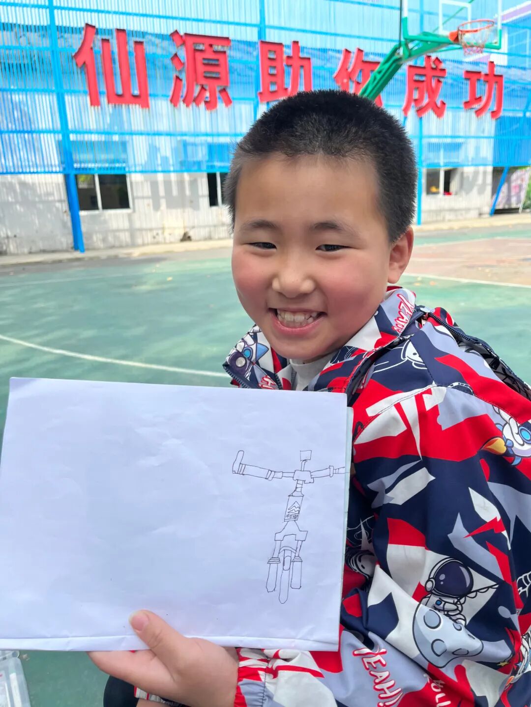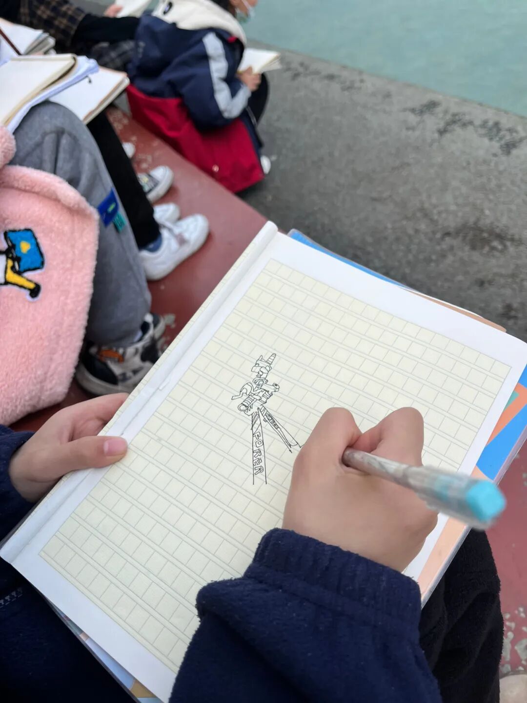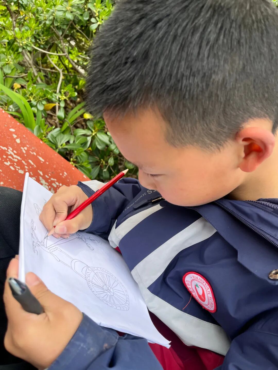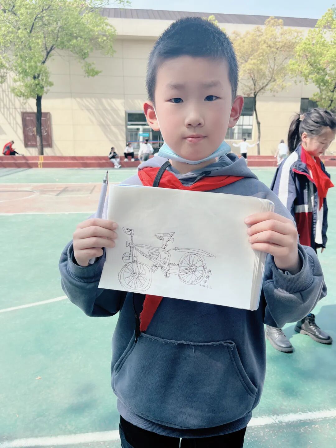 通过对自行车的局部精细地观察,然后进行线条的表现,看!同学们的作品,在提高学生的观察能力的同时又提升了同学们线条的造型能力。 看我们多认真.... 认真的观察,细致的描绘。 通过这样的一节美术课让学生感受到创作的乐趣,充分调动了他们的艺术潜能。![]()