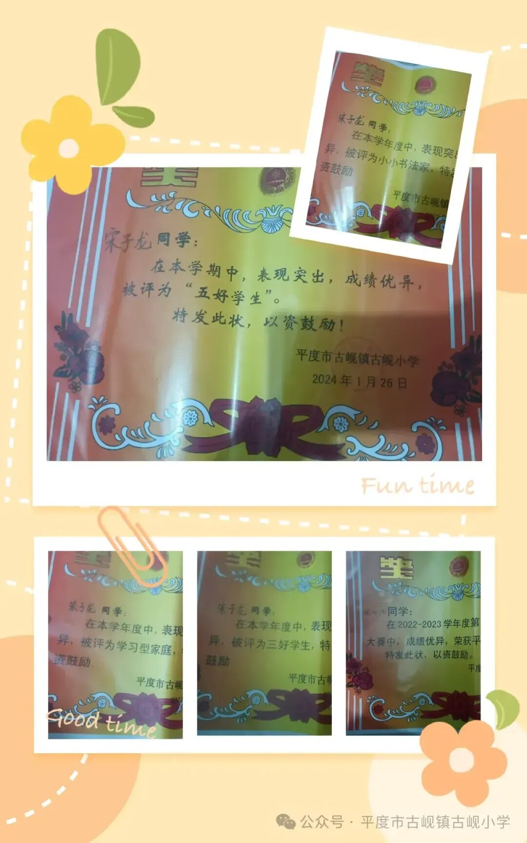 点击蓝字获取更多精彩信息 宋子龙同学是平度市古岘镇古岘小学六2中队队员。担任六年级二班的班长,数学课代表职务。 他勤奋好学,品学兼优,乐观向上,爱好广泛,尊敬师长,团结同学,在学习上认真刻苦,各科成绩都很优异。 在担当班干部的工作中,能出色完成老师交给的任务,并多次受到表扬,他时时刻刻都注意自己的言行,在德,智,体,美,劳等方面都有突出表现,是同学们学习的好榜样。 他学习态度谦虚认真,喜欢在学习中和生活中探索未知事物,他性格开朗,稳重,有活力,待人热情,在校期间曾多次获得五好学生,三好学生,优秀班干部等荣誉。 在青岛市主办的国家中小学智慧教育平台应用展示会暨“国家智慧教育示范区创建“现场会现场,代表学校“三人行创客团队”对校园巡逻车进行精彩解说。 他热爱计算机这一门学科,痴迷电脑编程,在《第14届山东省青少年科学影像节科学微电影》荣获二等奖的好成绩。 生活中的他不怕吃苦,热爱劳动,关爱老人,时常帮助父母做一些力所能及的事,是爸爸妈妈眼中最温暖的儿子。 路漫漫其修远兮,吾将上下而求索。学习不是容易的事,可他从来不畏惧困难,总是迎难而上,相信“世上无难事,只怕有心人”,相信自己通过努力就能做到最好! END 撰稿:杨阳 编辑:荆飞 校文:任付阳 审阅:位本鑫![]()