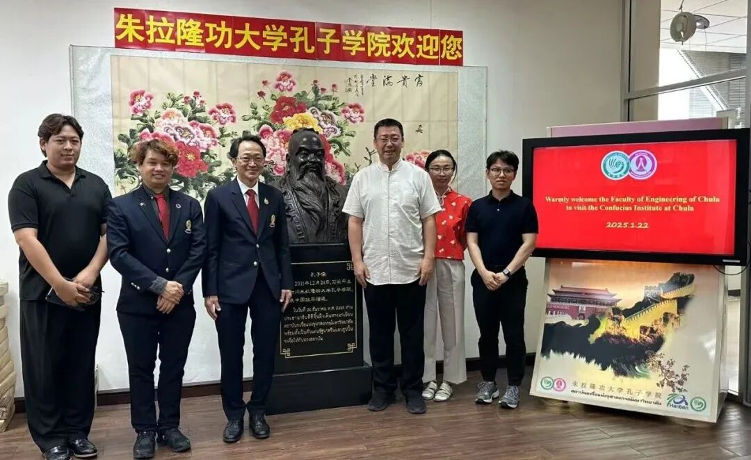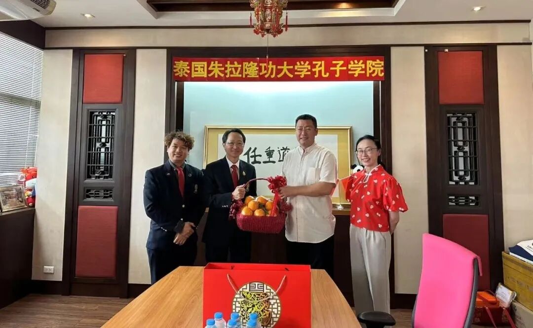 1月22日下午1点半,朱拉隆功大学工程学院院长威他亚·万纳苏坡帕希副教授一行五人到访朱大孔子学院,朱大孔子学院中方院长韩圣龙和教学管理负责人陈子鸿热情接待了来访客人。威他亚院长向韩院长表达了新春祝福,感谢孔子学院为工程学院教职工开设中文课程,并表示参加学习的工程学院的教职工们都对孔子学院的老师们给予了极高的评价,有更多的教职工和学生们想学习中文;韩院长表示,孔子学院会一如既往地支持工程学院师生的中文学习需求,将根据工程学院师生的需要来增设中文培训班。随后宾主交换礼物并合影留念。 供稿/韩圣龙 图片/朱大孔院教师 编辑/江昊宇 签发/韩圣龙![]()