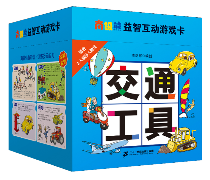 这套卡片内容丰富,包括《动物世界》《交通工具》《颜色形状》《英语ABC》四个主题,并配有中英双语注释。