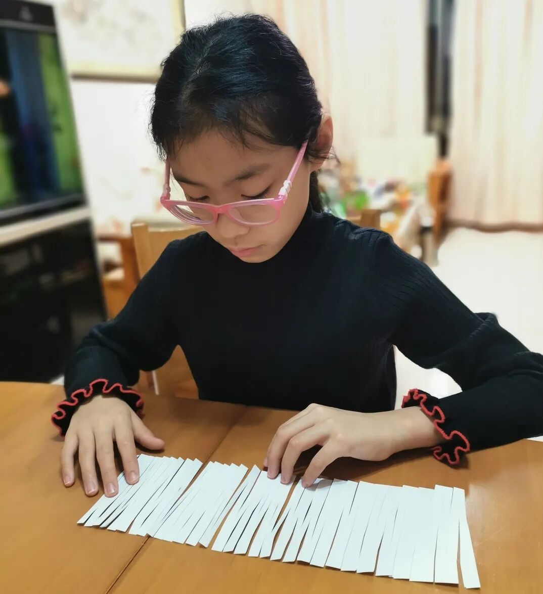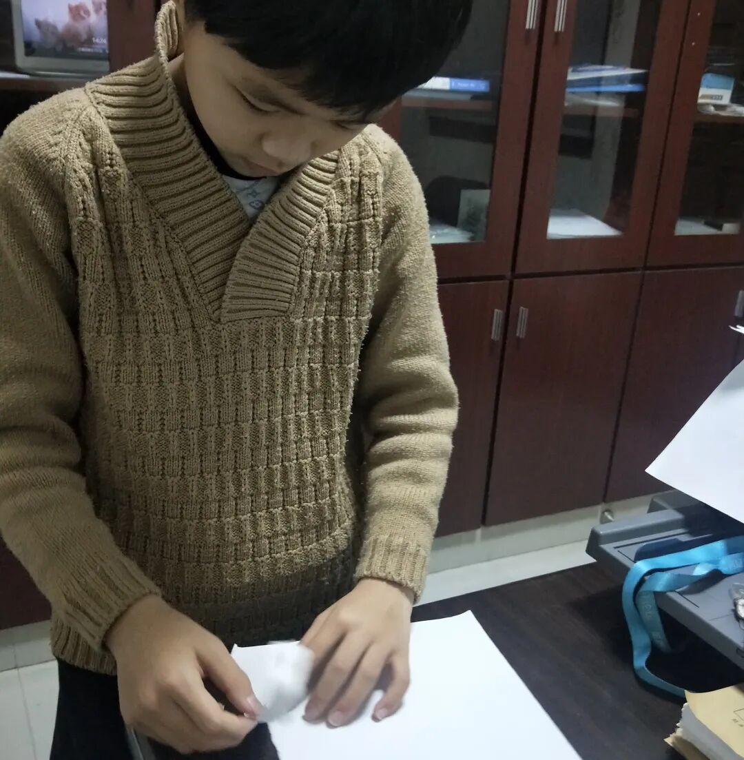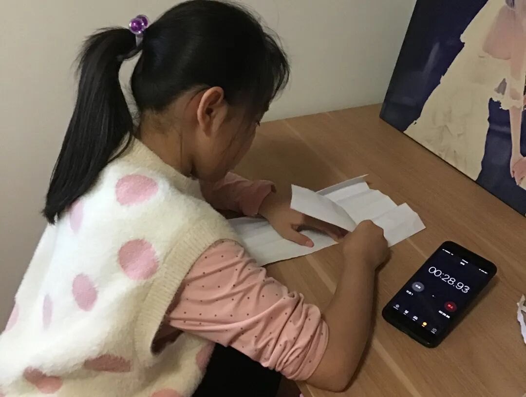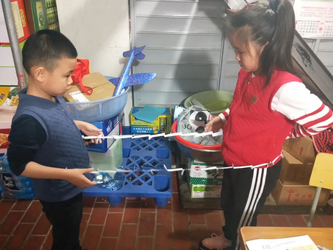 撕废纸考验的是同学们的手、眼、脑协调并用的能力,同学们巧动脑,用各自的方法,先折后撕,先卷后撕,运用“回”字型,“之”字型,或“门帘”式的各种撕法,同学们需要有足够的耐心与专注,才能保护好纸条不断裂,撕出最长的纸。一条条小纸条在同学们灵巧的双手与冷静的外表中慢慢的呈现出来······