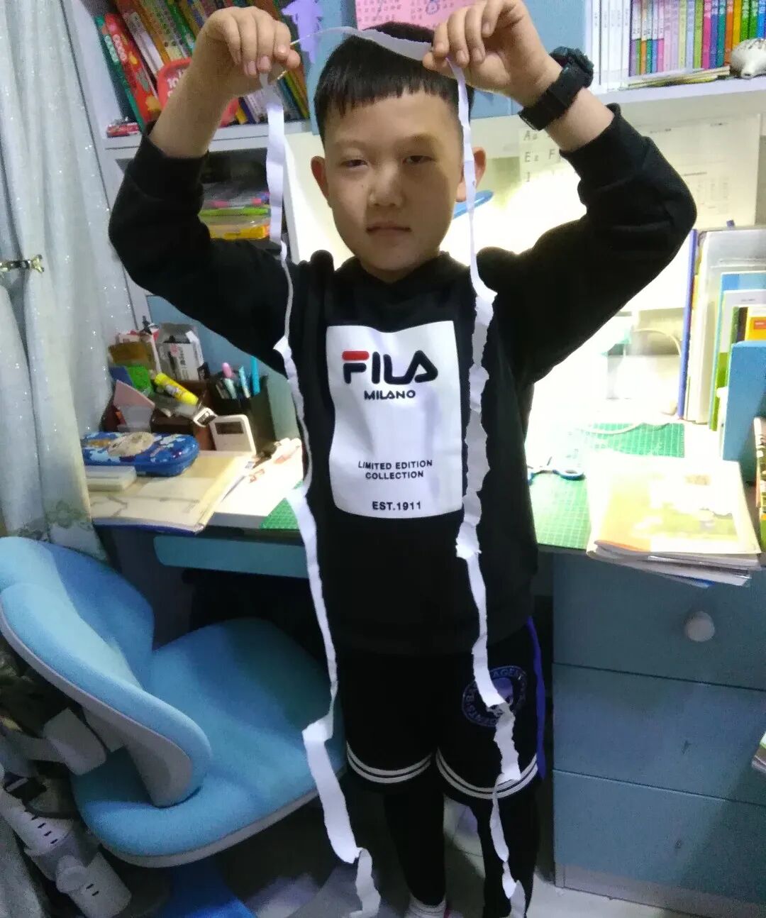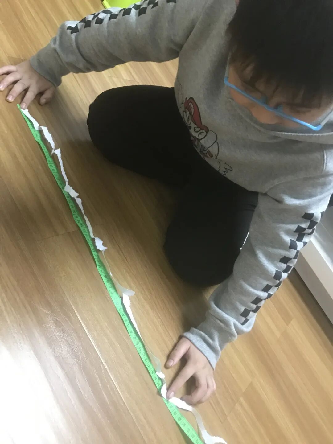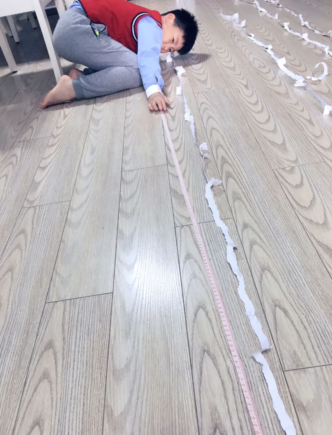 一张张A4纸在同学们的手中变成了长长的纸条,小科学家们都迫不及待动起手来,测量自己所撕的纸条。究竟谁能撕出最长的纸呢?