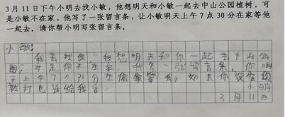 这位小朋友除了写清楚活动内容,还假设了小敏没空的情况,考虑得比较周全。