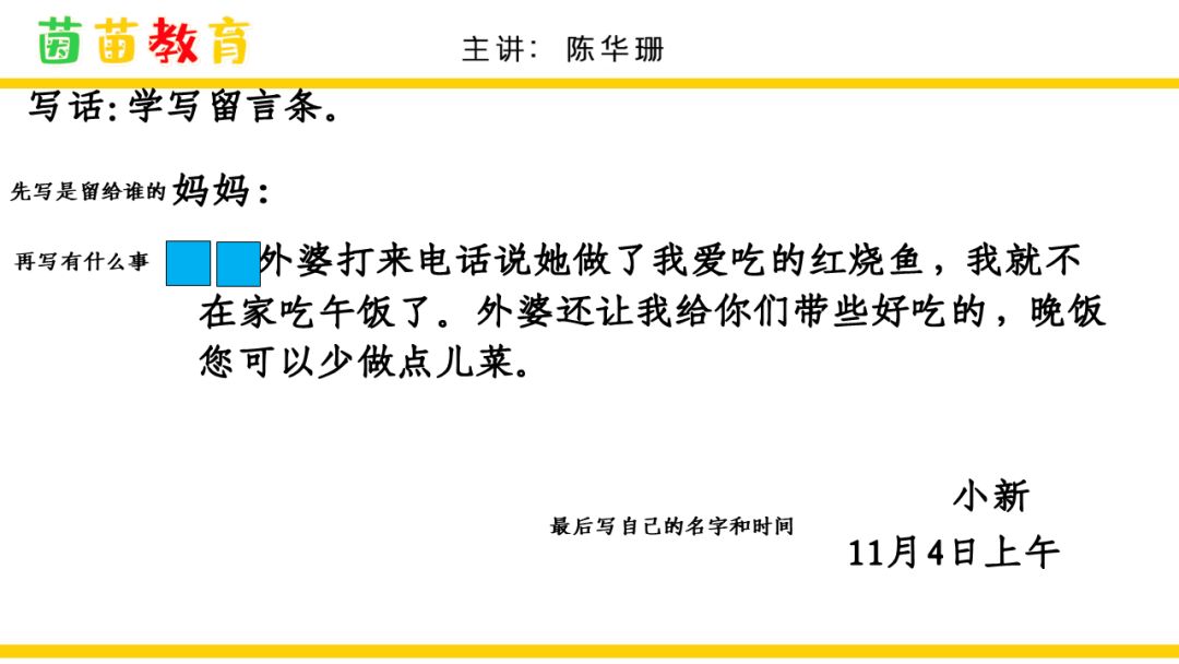 这是小明要写给老师的留言条,正文内容,就变成: