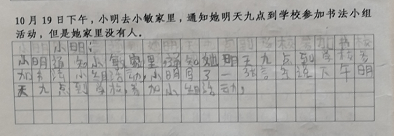 (3)小明去小敏家里,通知她明天九点到学校参加书法小组活动,但是她家里没有人。