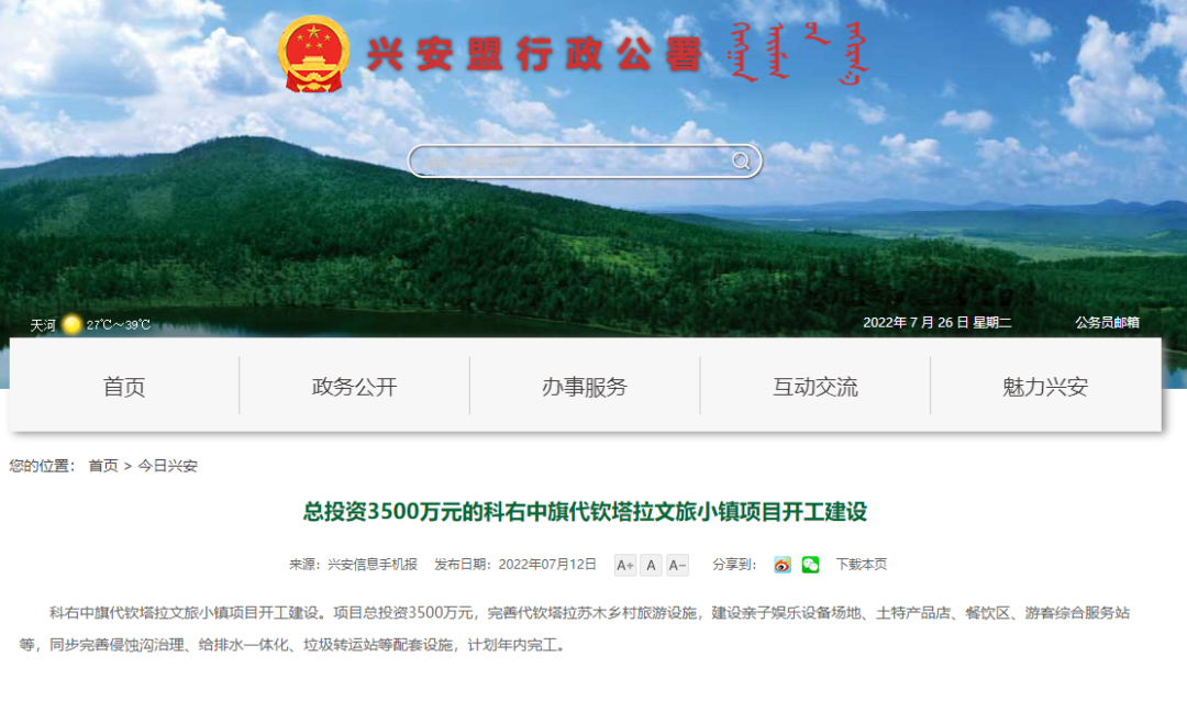 日前,科右中旗代钦塔拉文旅小镇项目开工建设。