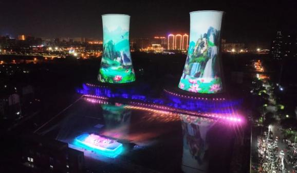 焦作·国际首创大型高塔实景演出文旅项目位于解放区焦西街道,项目占地约5万平方米,是利用焦作发电厂原址2个高100米、宽50米的凉水塔为演绎背景,配合重新建造的水面、流动性船舞台、大型演艺景观等场景,结合投影、声光电、水炮、火炮等,运用高科技光影技术,打造国际顶级高塔秀实景演出。