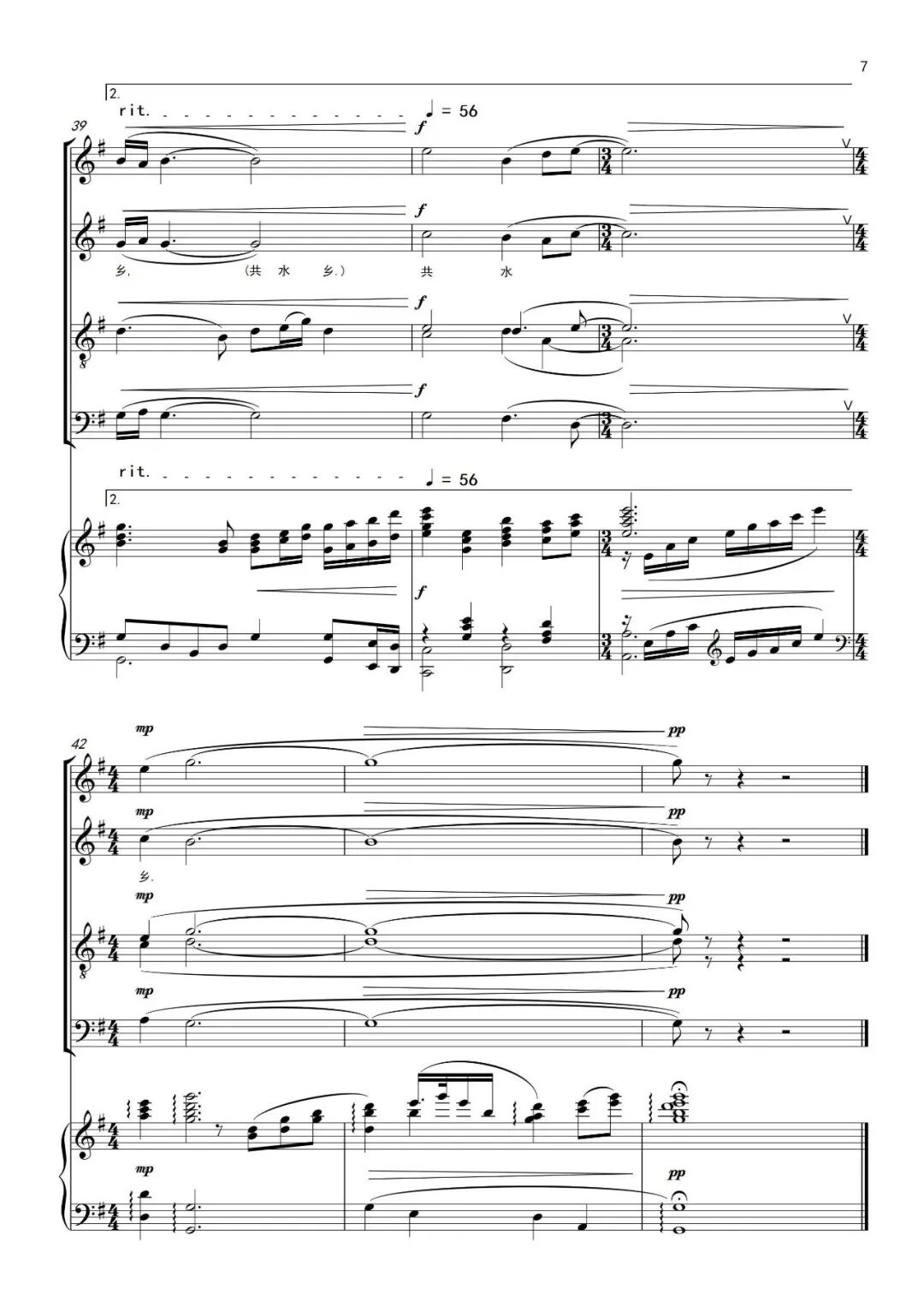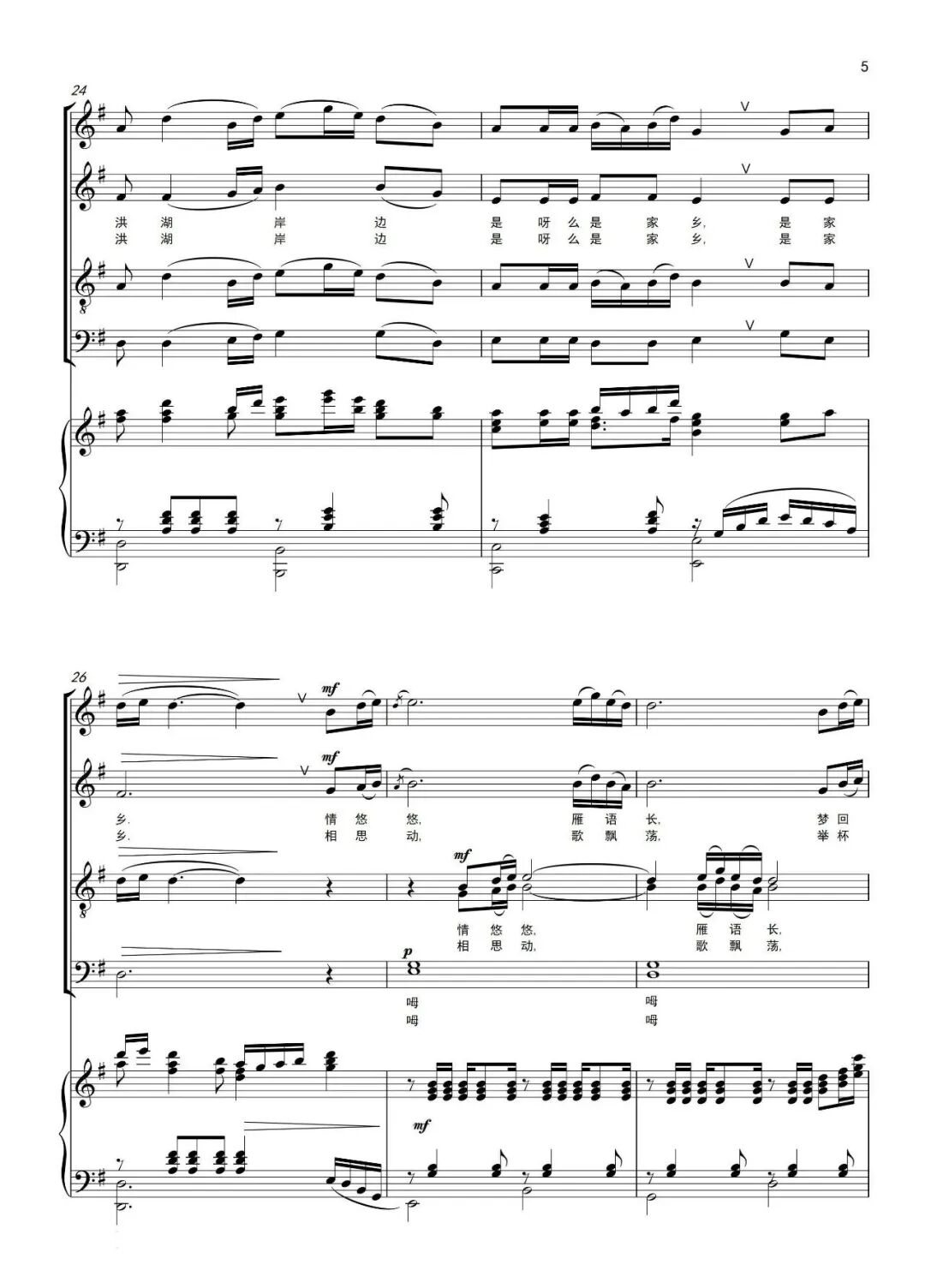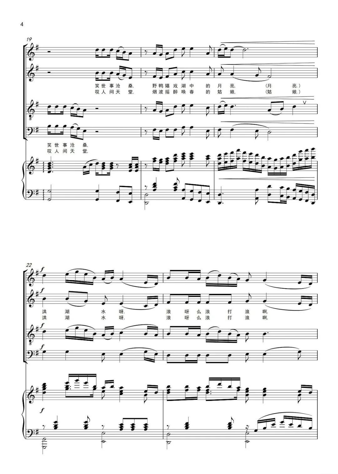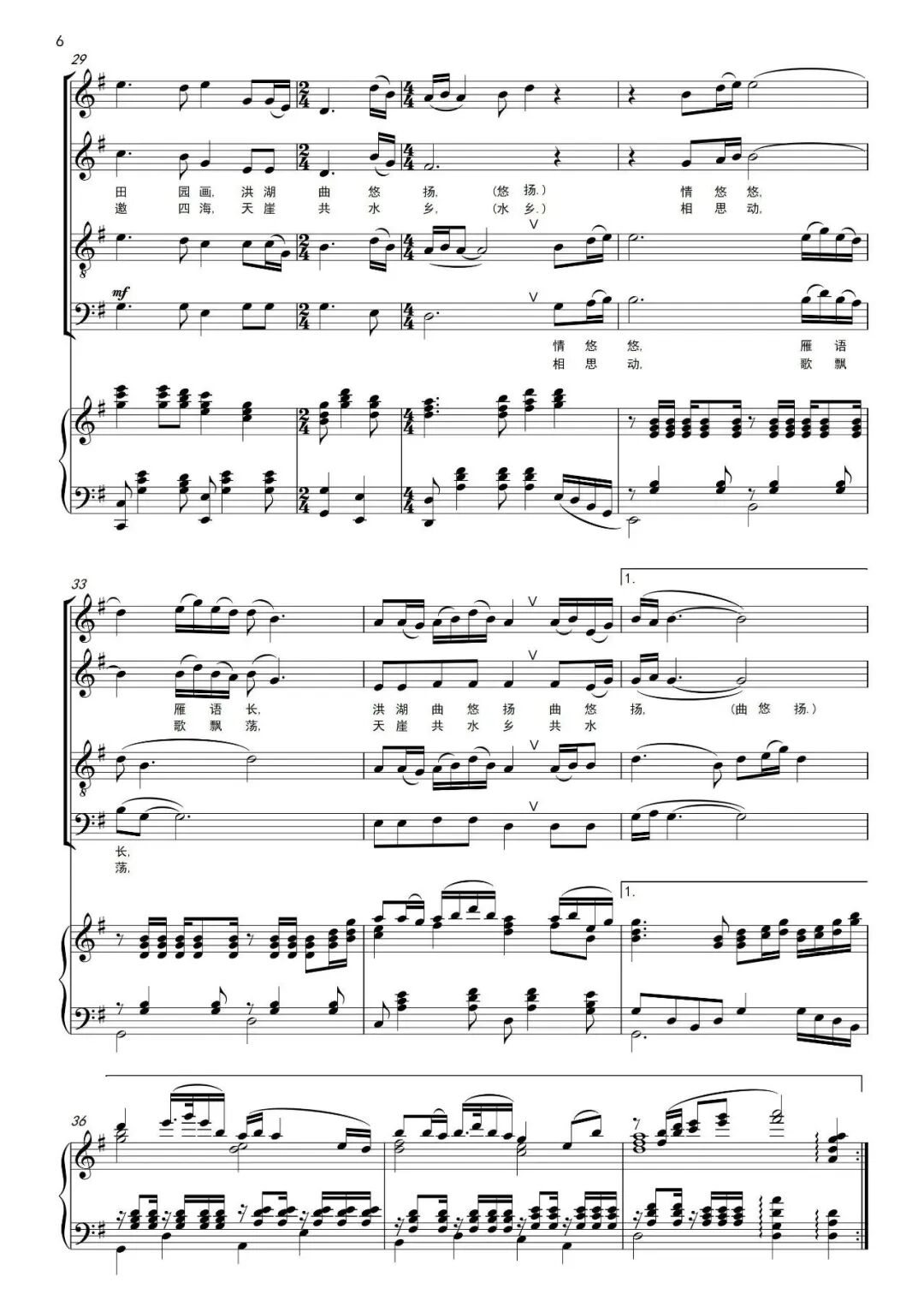 《再唱洪湖水》是由著名词作家陈汉武填词,曲作家王原平谱曲的一首歌曲。该歌曲创作于2012年,沿用了经典歌剧《洪湖水浪打浪》的江汉平原音乐风格,借助洪湖的历史影响,抒发了人们对绿色洪湖的热爱与眷恋,并唱出了洪湖人奋发图强、携手走向复兴的美好愿景。歌曲旋律亲切,画面感强,歌词唯美,展现了洪湖的特点和新时代洪湖人的风貌。此歌不仅是继《洪湖水浪打浪》之后的又一代表洪湖形象的靓丽名片,更是一部充满时代特点和乡土情节的佳作。 左右滑动查看完整曲谱 END 曲谱|网络 免责声明 “音乐大师学院”中文官方微信公众平台的部分内容来源于网络,旨在传递更多音乐艺术相关信息,仅供音乐爱好者学习、交流、研究使用,版权归原作者所有。如引用内容涉及版权等问题,请及时联系我们,以便我们予以改正。 音乐大师学院是一个涉及合唱、声乐、键盘(钢琴、手风琴)、弦乐、管乐、打击乐、音乐舞蹈等领域的专业教学、研讨、展示的在线音乐教育平台。 致力于整合世界范围内的音乐教育专家,向一线音乐教育工作者、广大青少年音乐爱好者传授音乐教育先进理念、体系、方法,助力一线音乐教育工作者在专业水平方面的进一步提升,为热爱音乐的青少年提供珍贵的学习机会,为音乐艺术团体提供专业的展示平台。 音乐大师学院|音乐道路上的领路人! 国际音乐大师入驻,海量课程资源助力快速提升! ■■■ 音乐大师学院 手机号|138-1178-4824 长按扫描二维码 开启音乐大师学院的线上学习之旅 点击名片 关注我们 情感启示在合唱指挥中的功能与运用 合唱指挥处理音乐作品的手法 曲谱分享|二声部合唱《莫尼山》 小学音乐体验式合唱教学中的问题与对策 合唱教学:追求“和”的效应 视唱练耳在少儿合唱训练中的应用 曲谱分享|男声四重唱《故乡的云》 合唱训练中的音准把握策略 童声合唱的训练要点 曲谱分享|二声部合唱《奉献》 起拍和收拍技巧在合唱指挥中的应用 “肢体辅助式”发声练习 在合唱训练中的作用 合唱艺术中的音色融合与表现力研究 合唱指挥技巧对音乐表现的影响 曲谱分享|童声合唱《大山的小姑娘》(本曲适合童声、女声合唱团) 合唱教学中的基础训练方法 曲谱分享|混声合唱《春风十万里》 情感表达在合唱课教学中的应用 合唱指挥手势动作设计与作品情感的对应 曲谱分享|童声合唱《牧童之歌》![]()