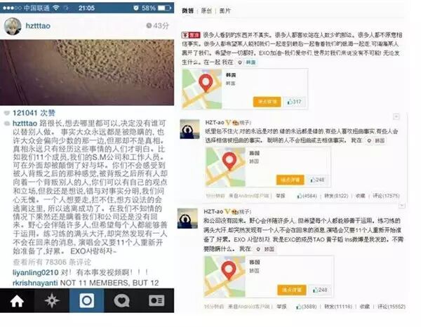 紧跟着,鹿晗也跟SM公司解约了。。。这回涛涛倒是很开心,微博发了一条心情大好的视频还解说“很安静的地方~Iv”。内心OS大概是,碍眼的小婊砸终于走了,老娘想静静了