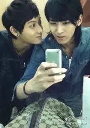 在天朝四子中呢,一开始黄子韬跟吴亦凡的关系是蛮好的。吴亦凡像个大哥哥啊,涛涛就是个小跟班。两个人成了一个CP组合叫牛桃,吴亦凡是牛,因为出道前爱穿牛仔衣。。看看他们早期训练生的恩爱片段