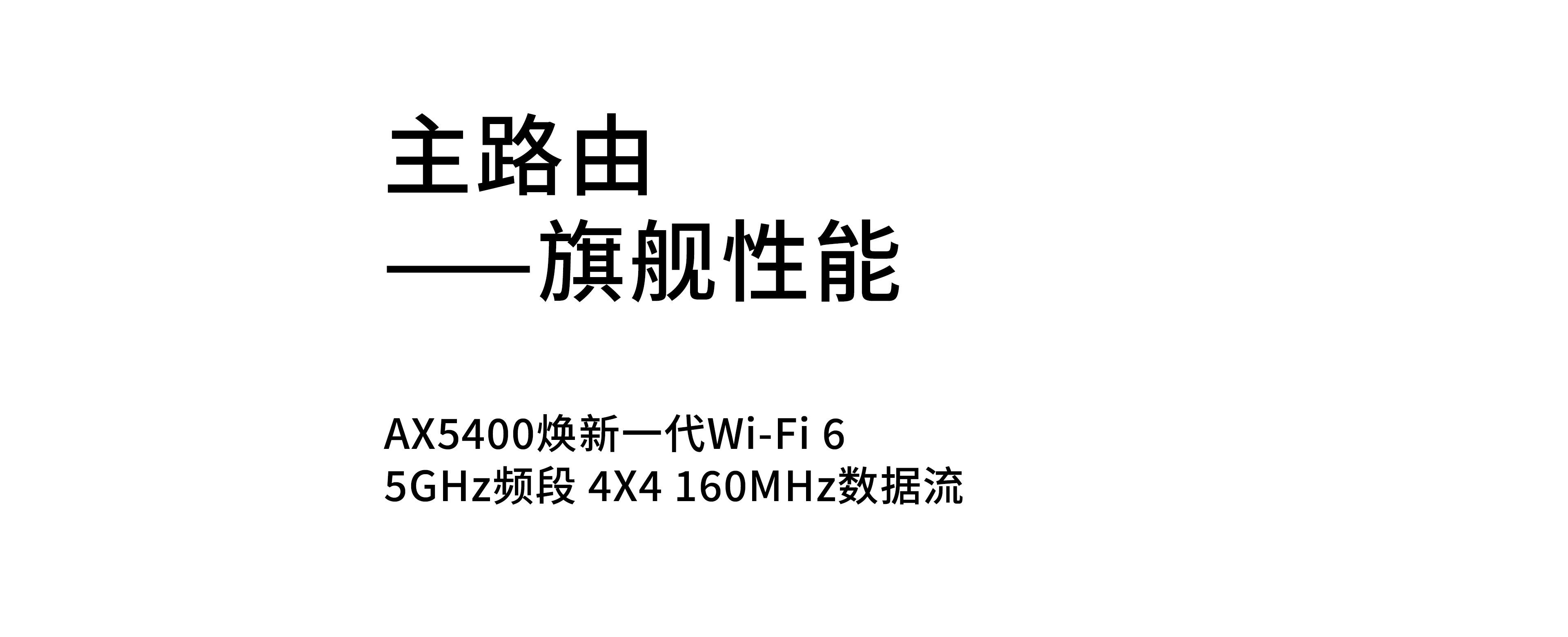 主路由支持焕新一代Wi-Fi 6标准,旗舰双频AX5400规格,网速更快。