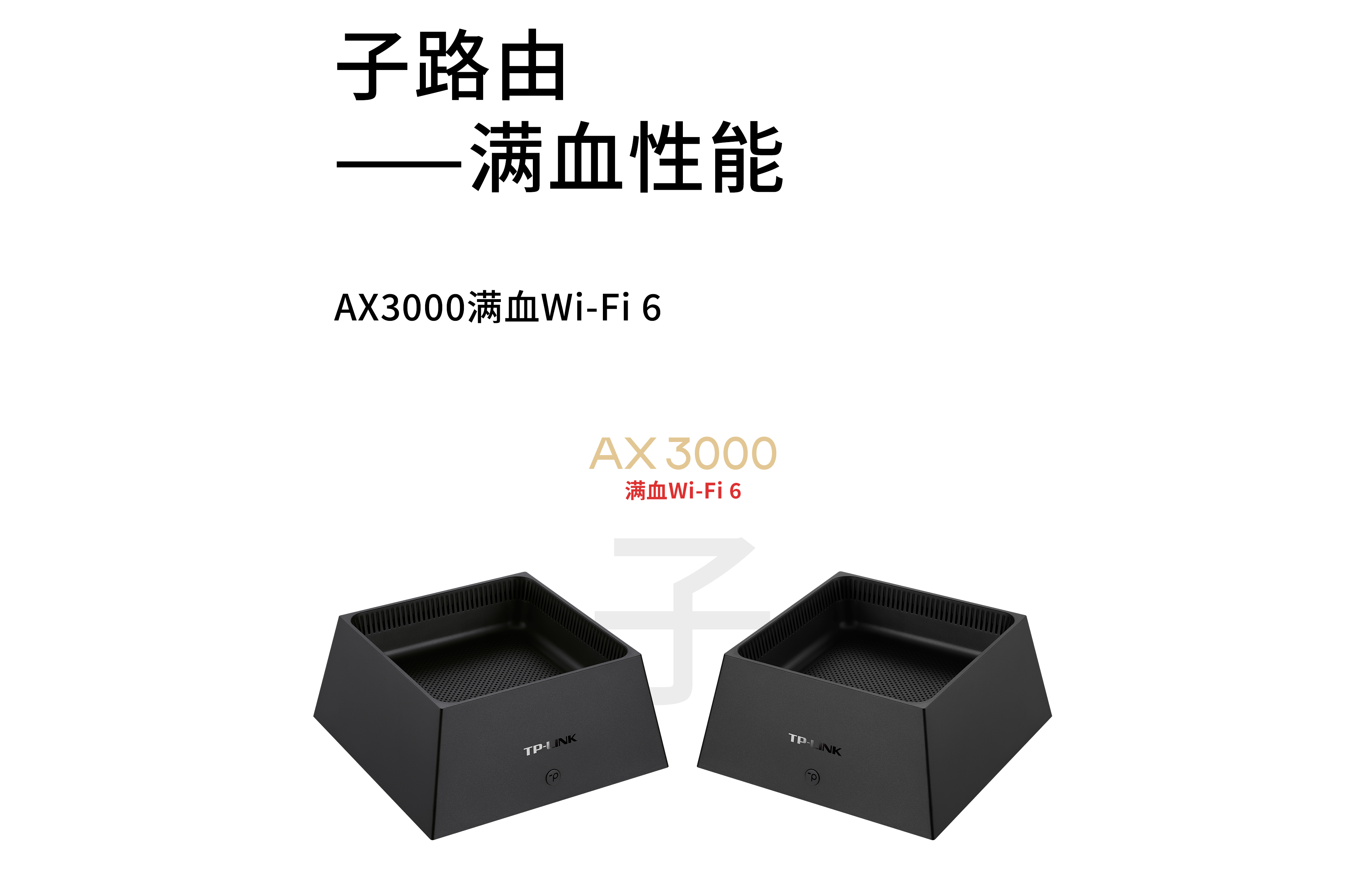 2台子路由均支持全新一代AX3000 Wi-Fi 6,无线速率可达3000Mbps2,满血