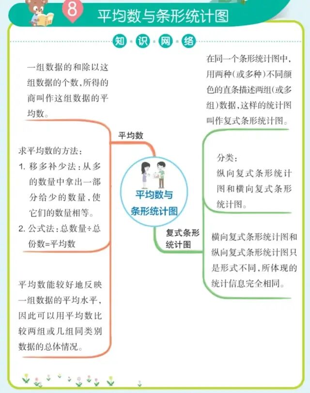1、条形统计图优点:直观地反映数量的多少。 2、折线统计图优点:既可以反映数量的多少,又能反映数量的增减变化。 3、折线统计图中,变化趋势指:上升或者下降。 | |