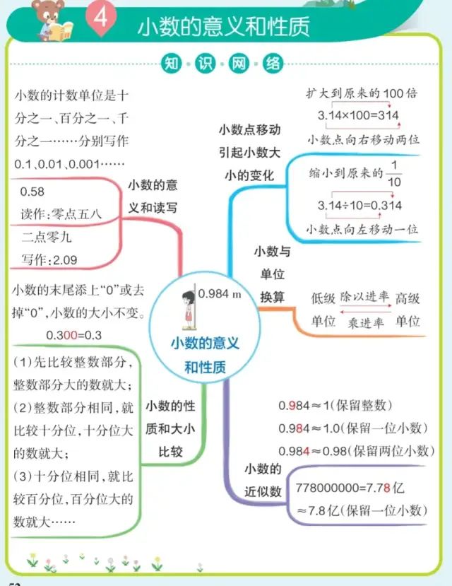 今天老师整理了小学四年级下册数学思维导图+各单元知识考点汇总,一份搞定新学期!