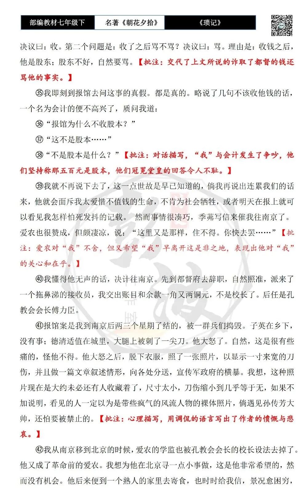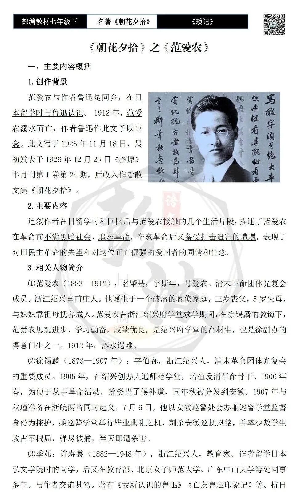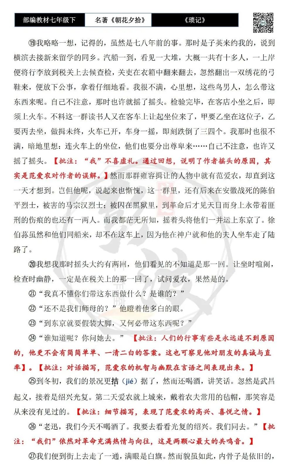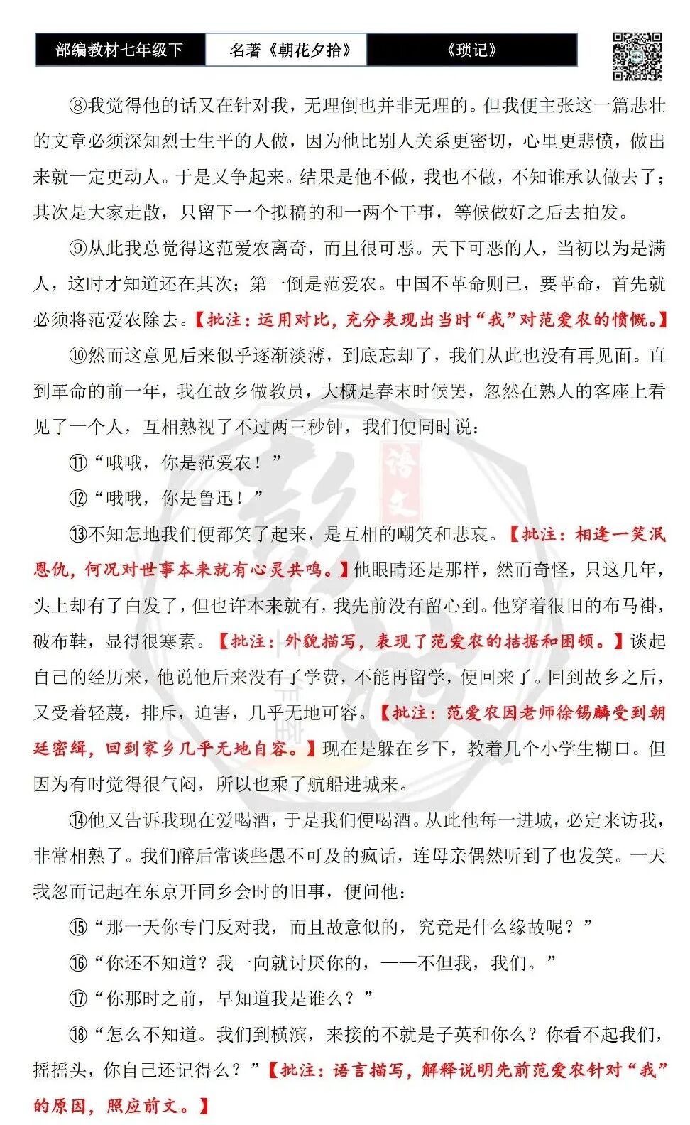 扫下面的二维码,加我好友,获取《朝花夕拾》以下资料: