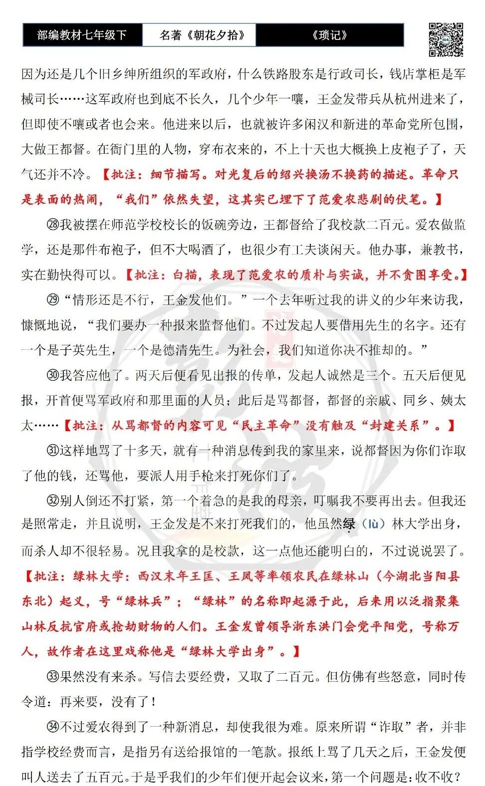 ◆02《朝花夕拾》文章批注(11篇WORD)(10元)