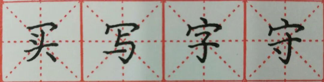 横钩的写法:横钩常见字“买”“写”“字”“守”等!练习时注意笔画的长短和安放位置!
