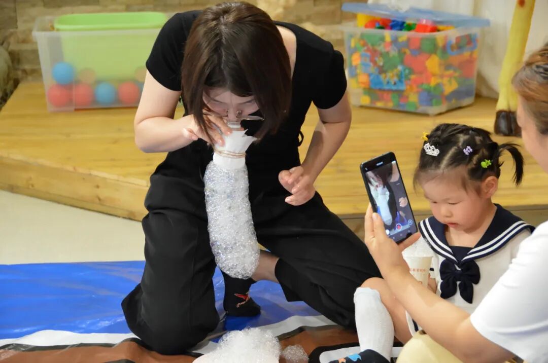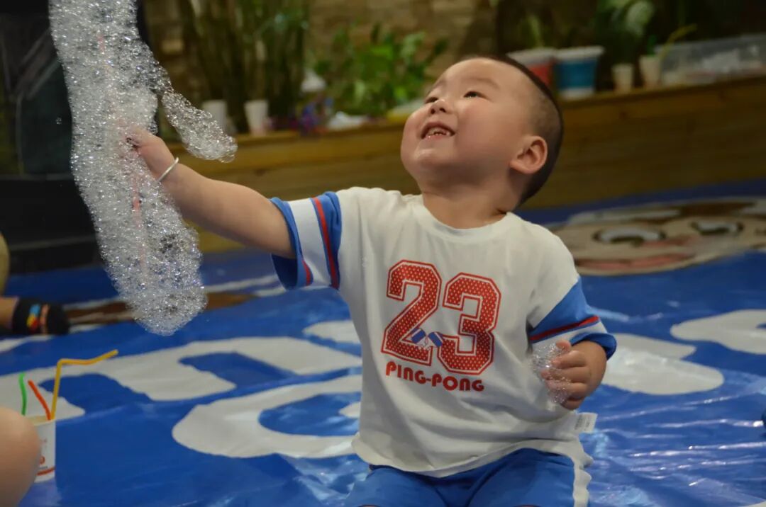 在这次小泡泡变大世界的科学探索活动中,孩子不断拓展自己的思维,也获得智慧的提升与经验的积累孩子们惊喜的看着泡泡机吹出的每一个泡泡里都倒映着一个好奇求知的眼神,一张天真无邪的笑脸。