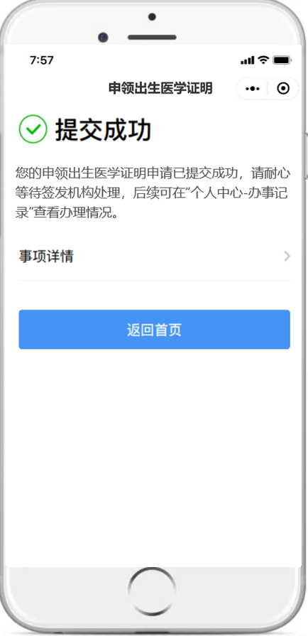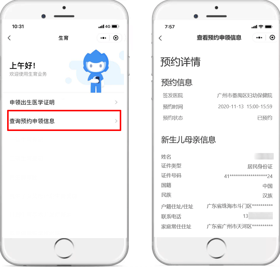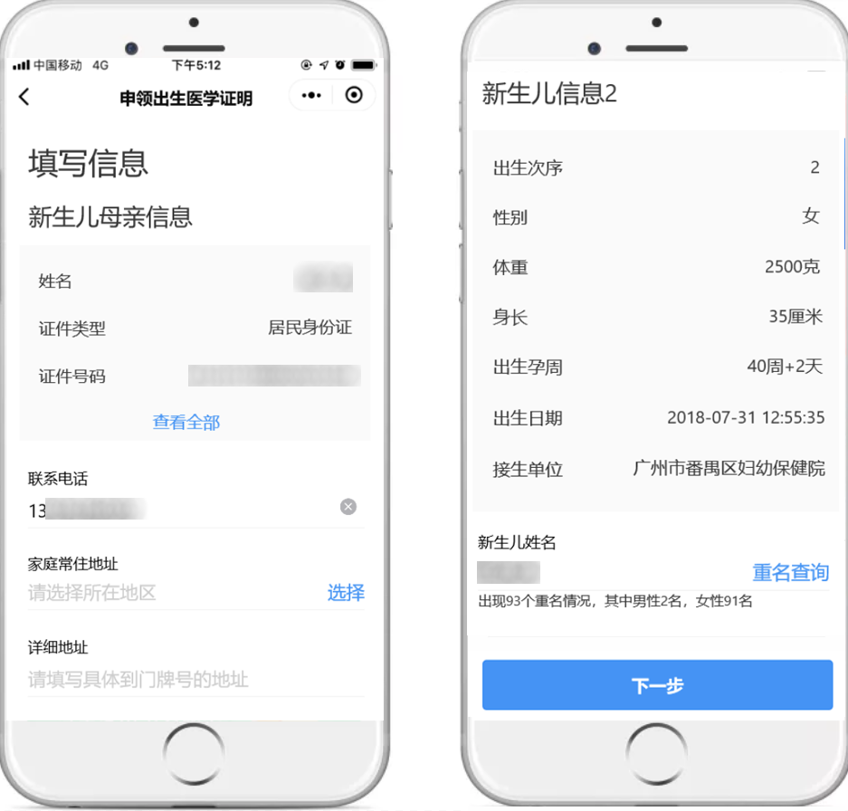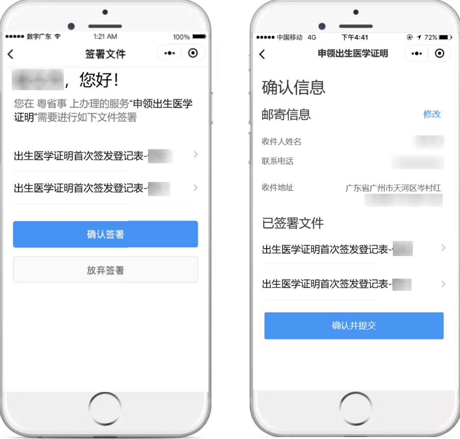 网上如何申领?请认准以下操作指南 (1)微信小程序搜索进入:微信搜索“粤省事”小程序,进入小程序首页左上角切换所在城市,点击右上角放大镜图标搜索“出生证”等关键词。 (2)微信搜索登录“粤省事”小程序,首页下滑点击“生育”板块,选择“申领出生医学证明”。 【温馨提示】 必须由母亲通过“粤省事”微信小程序发起办理申请。 操作流程 按页面要求填写信息,点击“下一步”。 提交成功后,即可等待签发机构处理。 查询进度和详情 办理完成后,可在“个人中心-办事记录”查看办理进度和邮寄情况。 选择邮政速递到家的,当办理进度为“邮寄中”时,可在“个人中心-办事记录”中查看邮寄物流详情。 选择预约机构领取的,也可从“生育”服务页面进入查询预约申领信息,领证时需新生儿母亲或父亲凭本人身份证和手机,现场刷脸认证、签名领取。 答疑解惑 1、快递费用谁来承担 邮政速递费用由申领人承担,因邮政速递过程产生的相关费用由申领人与邮政速递部门进行结算,速递资费按照邮政速递部门有关规定执行。 出生医学证明签发机构不收取任何费用。邮政速递过程中,若由于邮政速递原因导致出生医学证明邮件发生丢失、损坏、损毁等意外情况,邮政速递部门将主动与申领人联系,做好解释说明和补办工作,并向有关签发机构出具丢失证明文件及整改措施,协商进行补办,重新由邮政速递送达。 2、新生儿父亲可以网上办理申领业务吗? 新生儿出生医学证明线上申领只能由新生儿母亲办理。 3、哪些情况无法人脸识别认证网上申请申领? ①外籍人士; ②台湾同胞; ③夫妻双方均为港澳同胞或华侨; ④其他特殊无法刷脸认证的情形(可咨询分娩机构); ⑤换发和补发出生证暂不能网上申领。 无法通过“粤省事”微信小程序刷脸认证的,不能进行网上办理,请按助产机构原签发流程和需提供的材料现场办理。 4、申请成功后能否取消或变更? 当前申请成功后,可变更或取消(包括预约过期)3次,之后仍未办理的,只能按原签发流程和需提交的材料办理签发。 5、出生医学证明已签发,新生儿姓名还能修改吗? 新生儿姓名一经签发原则不允许变更,欲变更新生儿姓名的,可在户籍部门办理出生登记后再依照相关规定申请姓名变更。 “粤省事”线上申领出生医学证明 各位新晋爸爸妈妈们 你学会了吗? 出生医学证明出新规!签发、换证、补发要注意→ 点击上方蓝字 了解现场办理出生证, 团结 创新 严谨 求实![]()