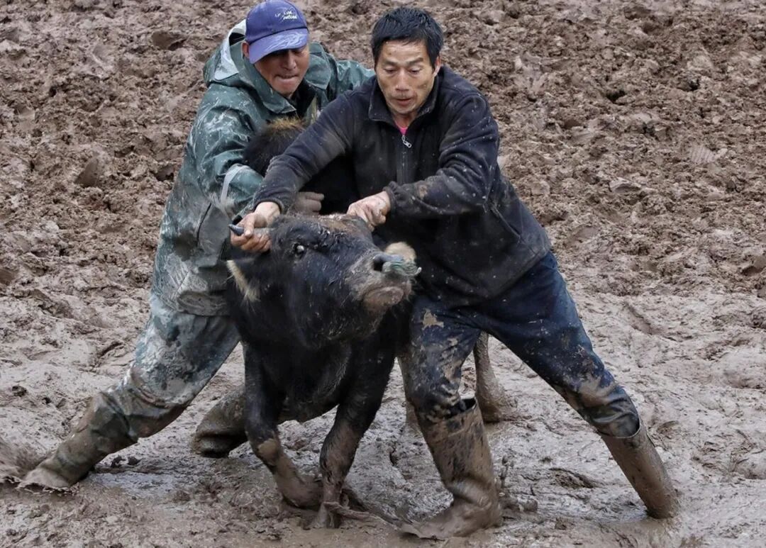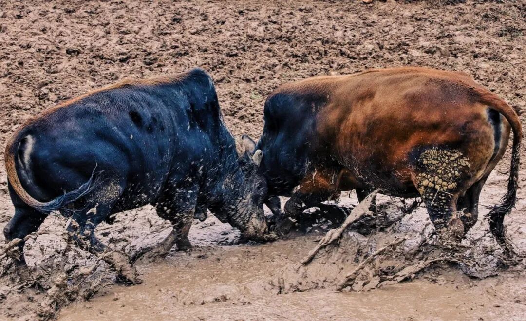 牛的脾气出了名的倔,却也千牛千相,性格迥异。如此交锋,勇者横冲直撞,所向披靡,弱者奔跳逃窜,场上泥浆飞溅,场面激烈壮观,让斗牛现场拉锯无数,精彩不断。