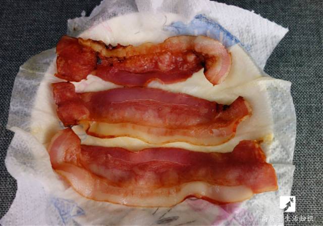把培根铺在垫有厨房用纸的碟子里