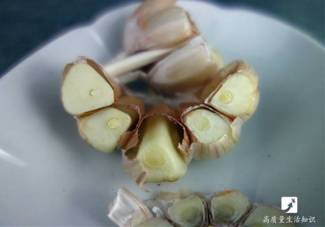 用刀把大蒜底部切开