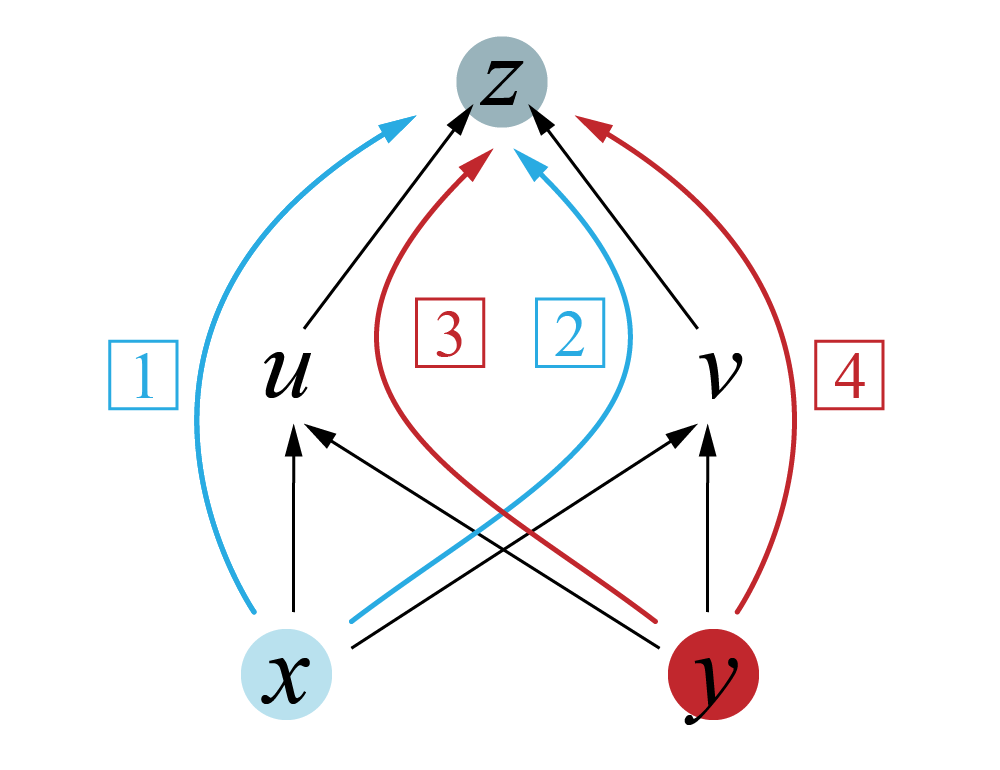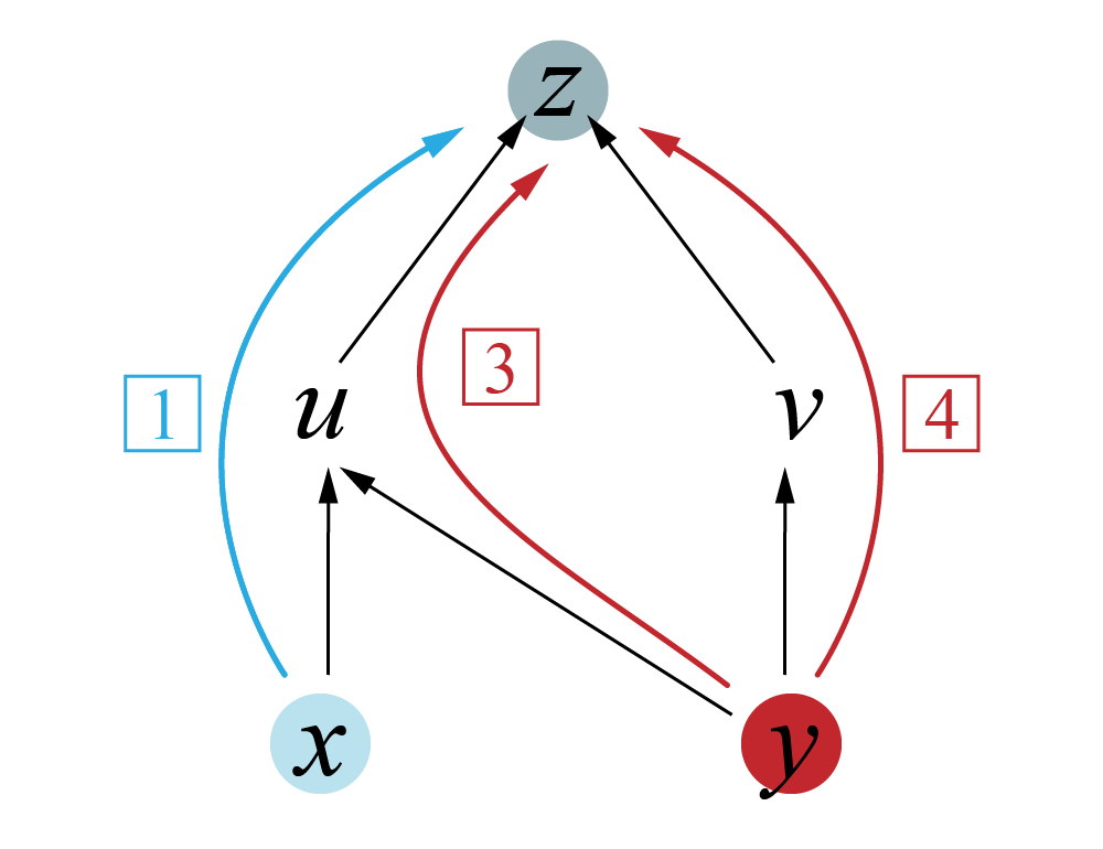 Th.2. 设 , , ,其中 在 处可偏导, 在对应点处可微, 则复合函数 在 处可偏导,且