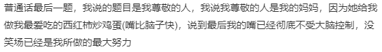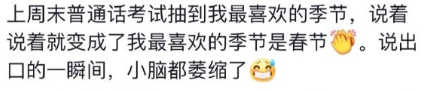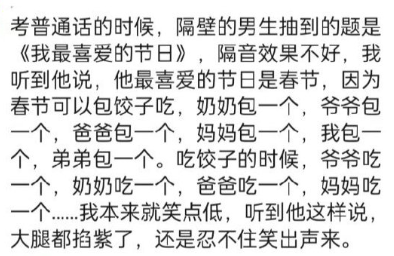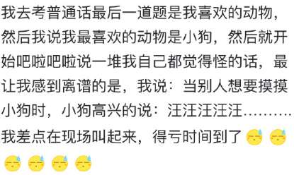 普通话最后一题命题说话 教资人的一生之敌 短短三分钟诠释了什么叫 人类登峰造极的胡言乱语能力 万能的“西红柿炒鸡蛋” 不管抽到什么题目 都能成功转到“西红柿炒鸡蛋” 所以,宇宙的中心是番茄炒蛋吗? 普通话最后一题 重复拖时间组 人类的本质是复读机 在这题中体现得淋漓尽致 好像说了什么,又什么都没说 咱就是说,重复这么多次了三分钟怎么还不到! 违反常规组 在命题说话的世界 一切皆有可能 原来我不是一个人在胡言乱语啊 普通话报名时间各地略有不同,同学们可以关注下方公众号,会及时推送福建省内各地普通话公告哦~ 【第一部分】读单音节字词 100个音节,限时3.5分钟,共10分; 【第二部分】读多音节词语 100个音节,限时2.5分钟,共20分; 【第三部分】朗读短文 400个音节,限时4分钟,共30分; 【第四部分】命题说话 不得少于3分钟,共40分。 一般而言认定语文学科,要求二甲及以上;认定其他学科,要求二乙及以上。(各地要求不同,以公告要求为准) ?敏试普通话面授集训课 ??专业测评员1对1面授纠错 ??课程专属协议保障,钱不会打水漂! 上课名额有限,赶紧咨询详情?? -广告- 一般是可以的。 点击查看??普通话证书丢了怎么办? -广告-