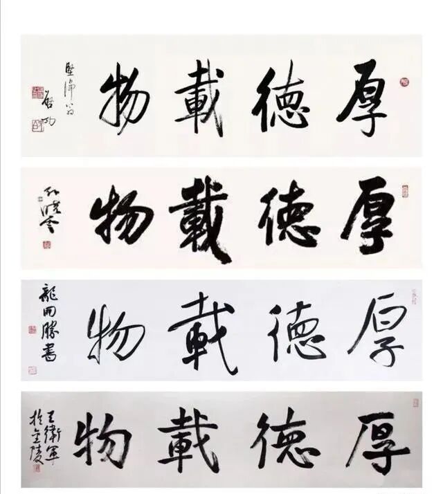 4位名家的行书横幅“厚德载物”