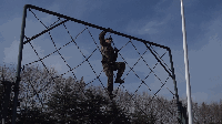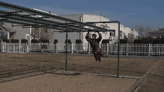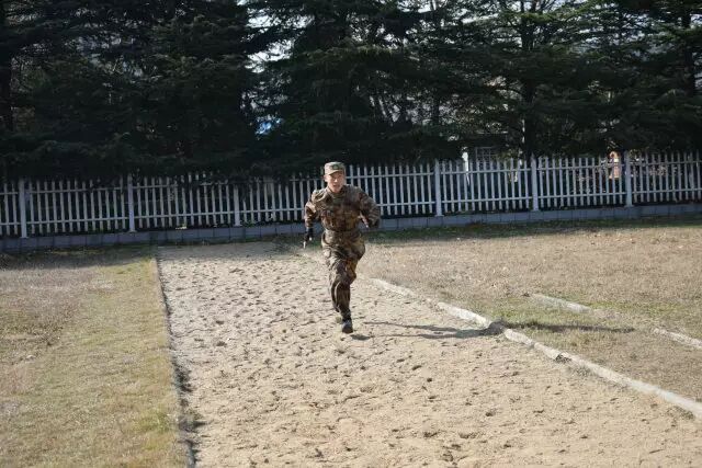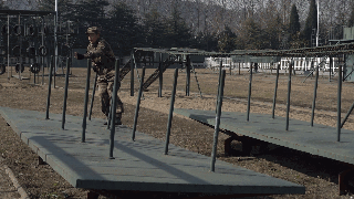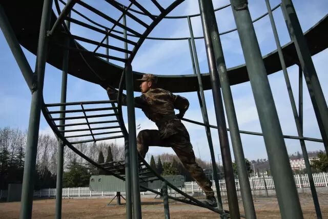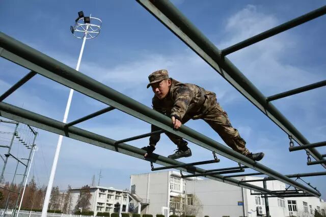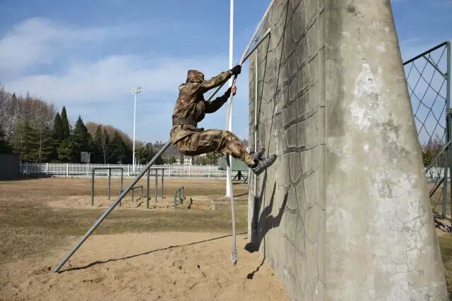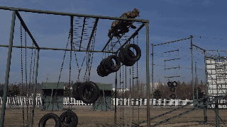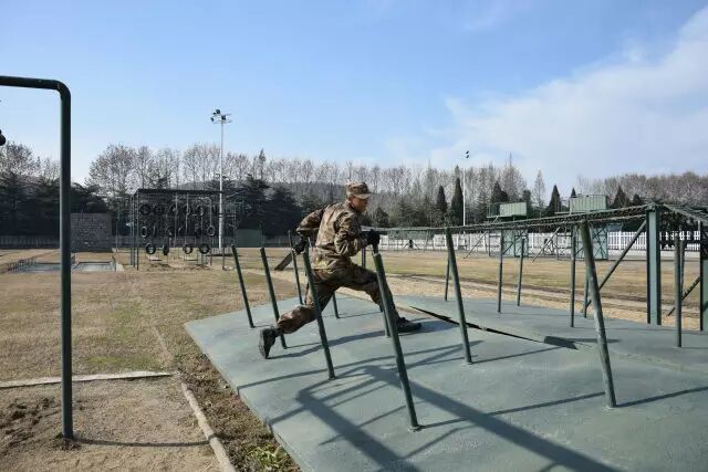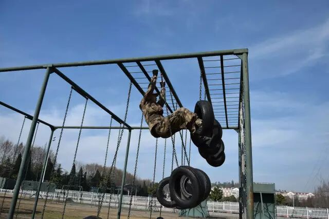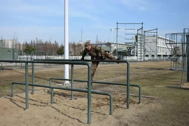 当被问及部队日常体能训练中最辛苦的课目是啥时,许多新战友的第一反应是武装五公里越野,然而经验丰富的老兵们的一句老话点破了真相:“宁跑五公里,不上四百米”。 真有传说中这么恐怖?不要被吓倒,我们先来了解一下这个课目到底是什么。 四百米渡海登岛障碍训练是指通过克服场地障碍使受训对象适应渡海登岛作战的一种体能训练。其障碍设置模拟渡海登岛作战过程中的装载、航渡、换乘、抢滩登陆等特殊状态,对提高受训者的海上单兵作战能力有着巨大帮助。 其场地设置采用4次回转,共10个障碍项目,依次是软桥、螺旋梯、高低横木、绳网、轮胎攀台、摇摆平台、晃动横梯、跨网、阻绝墙、模拟沙滩。 在部队和军校中,四百米渡海登岛是一项重要的体能考核项目,许多体能优异的战友在这个课目上总是离满分标准差一点,还有些小伙伴拼尽全力也还是没能跑进及格线。眼看又快要考核了,这可咋办? 别着急,下面就奉上通关秘籍,只要照此法潜心“修炼”,必定让你及格很轻松, 一、软桥 障碍介绍 软桥是四百米渡海登岛中的第一个障碍。障碍设置模仿水中浮桥,主要考验受训对象的身体平衡能力和协调性。 通关秘籍 重心放低步子准,目光平视身体稳。速度越快晃动小,找准中线匀速跑。 秘籍解读 把重心放低有利于保持身体平衡。脚步踏准踏实找准中线防止训练中坠桥。目光平视克服恐高心理。在桥上匀速跑动,跃起幅度不要过大,这样桥身晃动节奏固定,利于保持平衡节约体力。 二、螺旋梯 障碍介绍 螺旋梯顶端设环形平台,中心设滑竿。螺旋梯可以产生倾斜和晃动。螺旋梯的障碍设置模拟晃动的船舱,主要考验受训对象的抗眩晕能力。要求受训者从螺旋状楼梯登上障碍顶端,沿圆形通道跑动一圈之后顺滑竿滑下。 通关秘籍 手脚协力登顶端,两臂张开压栏杆。腿夹滑竿稍用力,落地瞬间要屈膝。 秘籍解读 在攀登螺旋梯时要靠手拉脚蹬,手脚协力登上障碍,这样既节约体力,又容易保持平衡。在沿圆形通道跑动时两臂要张开压住两侧栏杆,这样能够减轻障碍晃动对身体造成的影响。沿滑竿滑下时双腿夹杆控制好下降速度,接地瞬间屈膝缓冲,可以有效的保护脚踝膝盖,避免受伤。 三、高低横木 障碍介绍 高低横木是一种较为常见的障碍,主要考验受训对象身体灵活性。其第一根和第三根为高杠,第二根和第四根为低杠。高低横木是渡海登岛中的第三个障碍,尽管其难度不大,但如果能熟练做好衔接可以节约大量时间和体力。 通关秘籍 插腿低头降重心,手撑跨杠顺势蹲。高低衔接最关键,呼吸节奏要调匀。 秘籍解读 第一根横杠为矮杠,接近障碍时要迅速降低重心,低头插腿,在矮杆后下通过,之后手撑高杠,跨腿跳过第二根高杠。高杠与低杠的衔接最为关键,从高杠上跳下时要顺势蹲下插腿闪身过低杠。通过该障碍时应特别注意调整呼吸,为通过后面的障碍蓄力。 四、绳网 障碍介绍 绳网是整个四百米渡海登岛中最高的一个障碍,受训对象必须克服恐高心理才能顺利通过。 通关秘籍 手抓铁链脚蹬实,发力方向是竖直。贴杆跨腿翻过网,先讲安全再省时。 秘籍解读 在攀登绳网时要蹬稳把牢,使身体靠近绳网,发力竖直向上,这样能最大限度的保存体力。下网的过程中要注意安全,在确保安全的基础上再追求速度,新手切不可翻越绳网后直接从顶端跳下。 五、轮胎攀台 障碍介绍 轮胎攀台是整个四百米渡海登岛中难度最大的一个障碍,从障碍上离开时可选择沿绳滑下或沿软梯攀下。 通关秘籍 先手后脚,步步为营。障碍下法,建议用绳。 秘籍解读 攀登轮胎时要先用手抓住悬挂轮胎的铁链,稳住轮胎再上脚,这样能提高通过障碍的成功率。从障碍下来时有两种途径,一种是软梯,一种是粗绳,在此建议沿绳滑下,沿绳下降可以节约大量时间和体力,并且动作简单好上手。 六、摇摆平台 障碍介绍 摇摆平台是根据船上装载情况设置的。通过训练可以提高人体在船上的平衡能力,为战时快速通过天然障碍打好基础。 通关秘籍 起跳踏上平台,身体紧贴立柱。动作把握节奏,转身要迈大步。 秘籍解读 通过摇摆平台的关键在于身体紧贴立柱,这样可以让身体保持平衡,立柱与立柱之间的动作衔接要用大步,一步到位,这样可节约体力。摇摆平台上共9根立柱,把握好动作节奏,你会发现通过起来其实很简单。 七、晃动横梯 障碍介绍 晃动横梯的梯杠高低错落柔性连接,主要锻炼受训对象的身体协调性和掌握平衡的能力。 通关秘籍 抓杠引体上云梯,俯身爬行重心低。下落过程要抖腹,双脚接地要屈膝。 秘籍解读 晃动横梯是第七个障碍,由于前半程消耗体力过多,在此不推荐拉杠过云梯的方法,采用从云梯上爬过的方法最为省力。在云梯上爬行时注意降低重心,有利于保持平衡,下落过程中腹部要发力使身体向前甩动,落地时两脚同时着地并顺势屈膝可保护脚踝膝盖。 八、跨网 障碍介绍 该障碍模拟海边滩涂,主要锻炼受训人员的身体协调性。 通关秘籍 高抬快落,找准中线,大步向前。 秘籍解读 跨网也属于比较简单的障碍,训练时只需把握好方向,沿中线跑,腿高抬快落,就可顺利通过。 九、阻绝墙 障碍介绍 阻绝墙背面设滑竿一根,绳索两道,主要模拟战场上高墙。该障碍主要锻炼受训者的攀登能力。 通关秘籍 岩点踩实重心稳,到达顶端移重心。抓绳下落脚蹬墙,落地同时