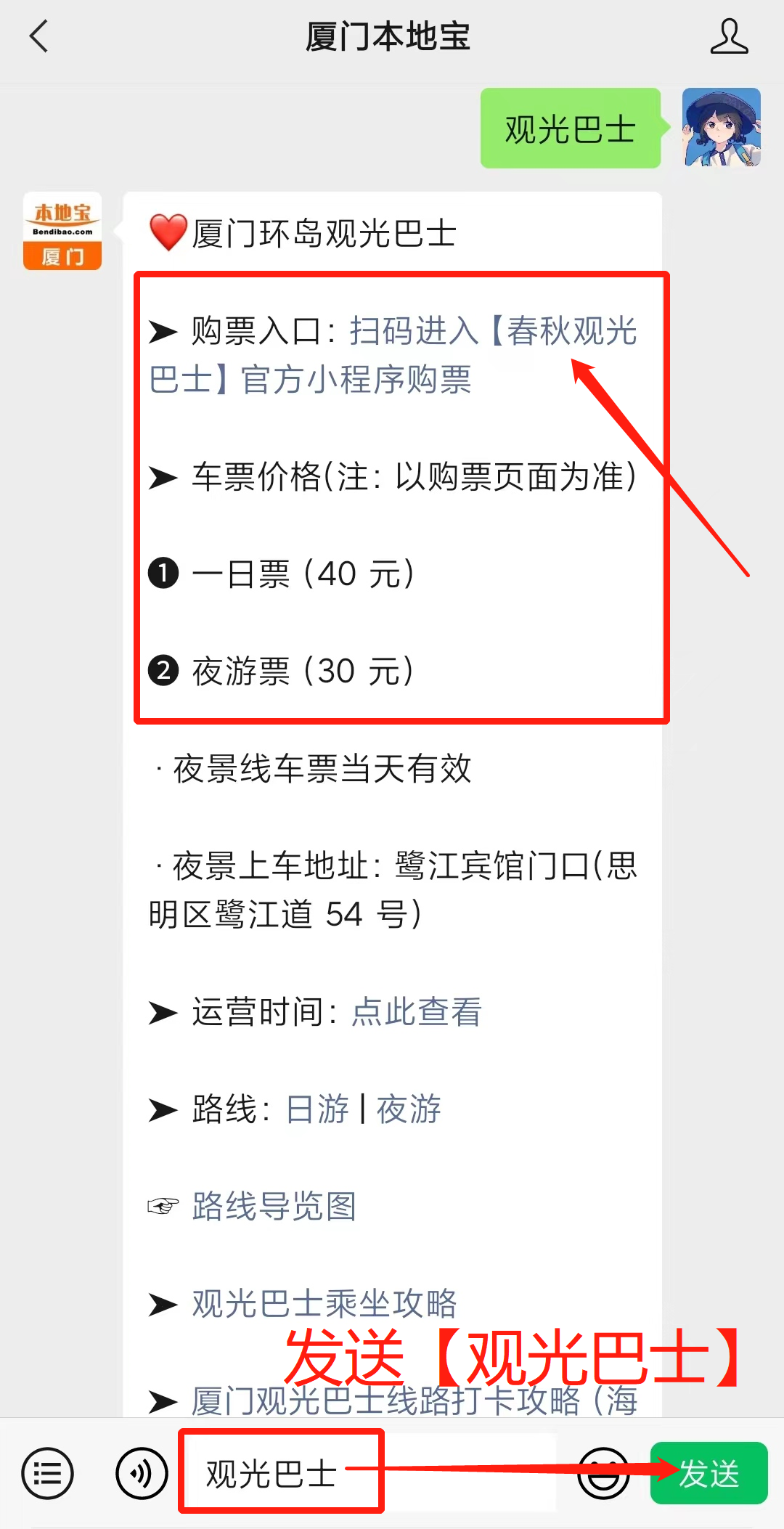 点击蓝字关注 想不想来一次 可以好好欣赏风景、逛景点 还能不累着自己的旅行呢? 那就坐上厦门这辆 鹭岛观光旅游巴士吧 以360°全景天窗视角 沉浸式领略厦门风光 厦门环岛观光巴士关键是还不累 一起出发吧~ 厦门环岛观光巴士双层封闭式车型、车身长12米、高4.2米、宽2.55米,全车配备62个座椅(上层46个,下层16个),还有360°全景天窗,让你以独特高度视角饱览厦门好风光。 摄图网 400060612 座椅旁边设有USB充电插口,满足乘客对于移动设备的充电需求。座椅背面配置智能语音讲解系统,内置多语言系统,沿途随景自动播放景点介绍,让游客体验一窗一景的观光感觉。 点击下方公众号名片 关注【厦门本地宝】公众号 在聊天对话框输入【观光巴士】 获取 厦门环岛观光巴士厦门环岛观光巴士购票入口! 图源 厦门双层观光巴士 厦门观光巴士鹭岛观光旅游1线分上行线和下行线。从厦鼓游轮码头行驶至黄厝途径厦门13大主要景点、24个站点将厦鼓邮轮码头、环岛路、山海健康步道、中山路轮渡、和平码头、演武大桥世贸双子塔、沙坡尾文化街、顶澳仔猫街、南普陀、厦门大学、白城沙滩、胡里山炮台、珍珠湾、曾厝按、塔头、黄厝、中山路步行街、中华城等著名景点、民俗风情、特色美食串联起来。 运营时间:9:00-18:00 每20-30分钟一班(具体间隔时间以当季发班时间为准) 在鹭江宾馆门口上车,沿途欣赏:中山路南洋风貌骑楼夜景、鼓浪屿外郑成功雕像、高低错落演武大桥夜景、海上炫彩游轮交相呼应、360°欣赏世茂双塔。 运营时间:晚上18:00-21:00,每半小时一班 上车地点:鹭江宾馆门口(思明区鹭江到54号) 摄图网 500745365 鹭岛观光旅游1线【24小时一日票】:40元/人 *首次乘车激活起24小时运营时间内 (09:00-18:00) 有效,可不限次乘坐,各站点随意上下车。 鹭岛观光旅游1线【48小时一日票】50元/人 *首次乘车激活起24小时运营时间内 (09:00-18:00) 有效,可不限次乘坐,各站点随意上下车。 厦门观光夜游线:30元/人 *随买随用、夜景线车票当天有效。 1.线上购票后无需换票,支付成功后可在都市观光小程序或短信中使用乘车二维码,直接扫码上车。 2.赠送导览图和耳机,每个座位有中、英闽南语定位讲解,边看边听。 3.儿童1.4米以下免票,每位成人可用携带一名儿童,需家长陪同。 4.激活后不支持退票,未激活可随时退。 5.一个订单对应一个乘车码,如多人出行需同时上车。 摄图网 507353962 有没有越看越心动~ 一起穿越山和大海 尽享鹭岛风情吧回复“观光巴士”获取厦门观光巴士购票入口
