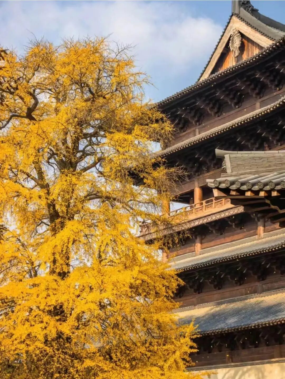 那一树树流光溢彩的飞黄,随秋风吹动万万遍,片片飘落而下,寺内瞬间漫天金黄,穿过廊樘,站于这金黄下,展开双手,迎接飞叶,咔擦一声,拍一张,很出片~