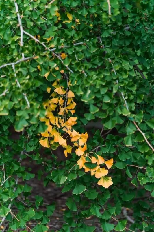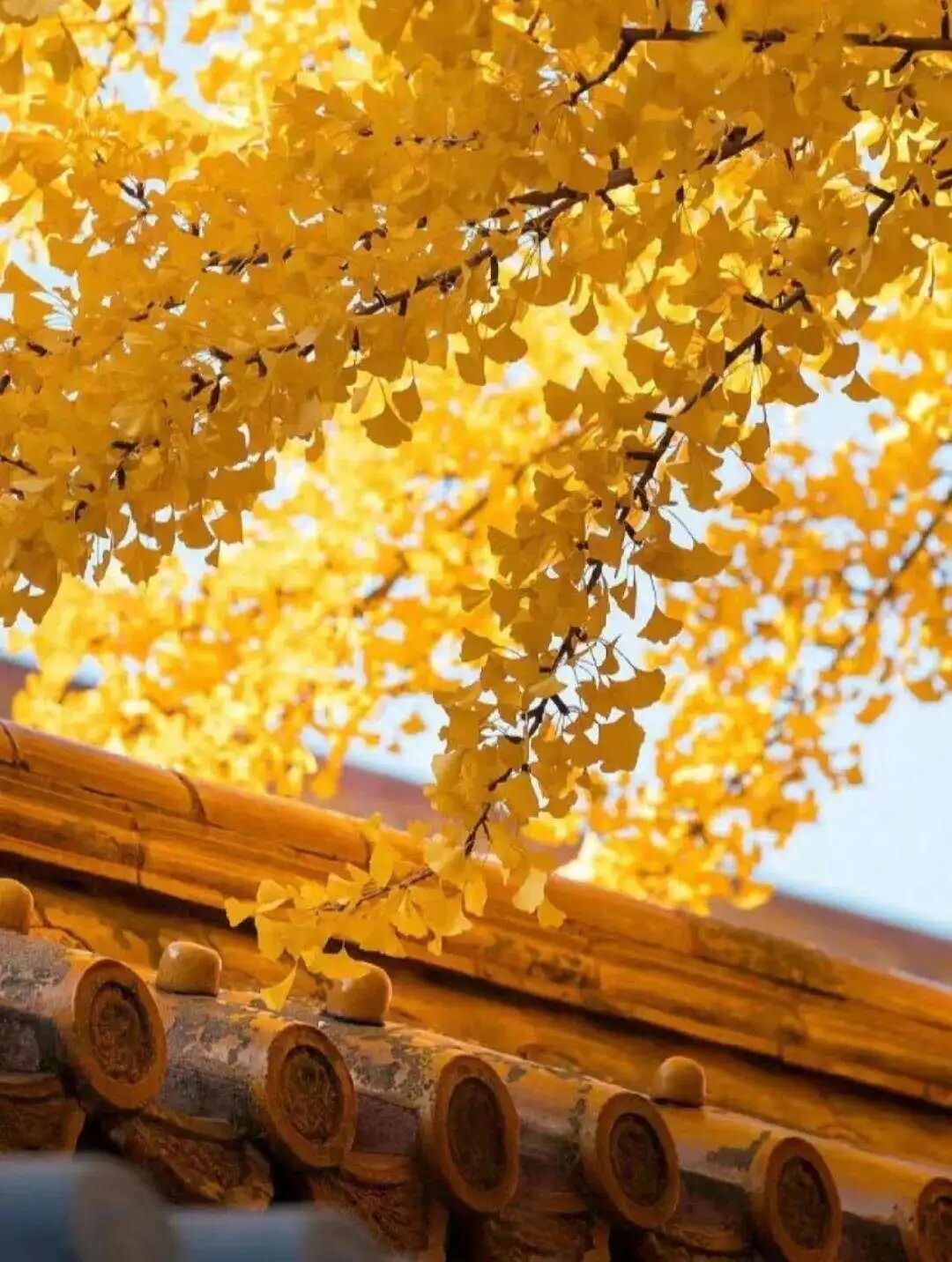 高大的银杏树掩映在黄墙红瓦下,别有一番风味,古老的建筑与千年银杏紧密地融为一体。