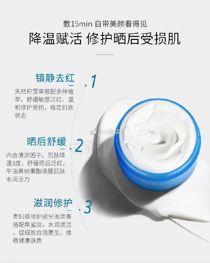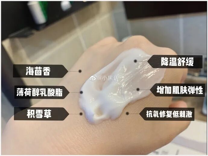 添加+薄荷醇乳酸脂提取物,薄荷醇乳酸脂相比传统的薄荷醇更温和,皮肤温度下降3度