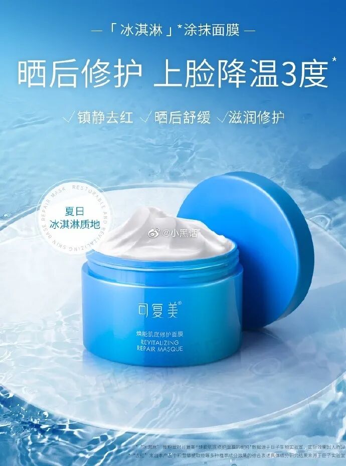 用起来凉凉的所有也有人说是冰淇淋面膜。很大一罐,沉甸甸的,可以用很久罐子里面盖子自带小提手,方便打开,还带了一个小勺子,大小正好蛮好用的。面膜是很浓稠的酸奶质地,闻起来和它家贴片面膜差不多,但是味道淡很多~ 可复美面膜的功效