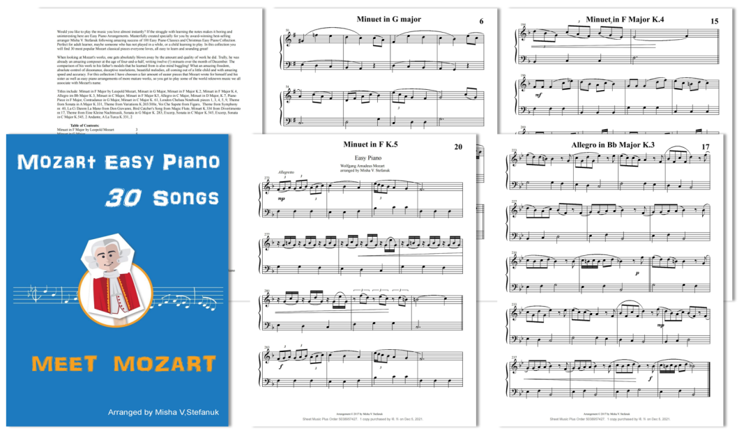 我相信,莫扎特的音乐会一直伴随着孩子们的音乐学习。今天金豆妈给小朋友们分享的这套《30首简单版莫扎特钢琴谱集》,一定会让很多的孩子爱上莫扎特的音乐。