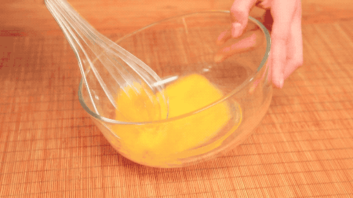 2. 蛋液里的盐一定要打散,融化。