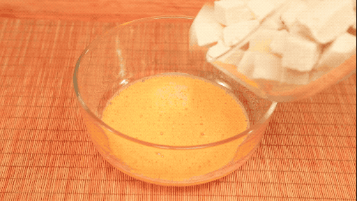 3. 馒头块放在蛋液中裹匀