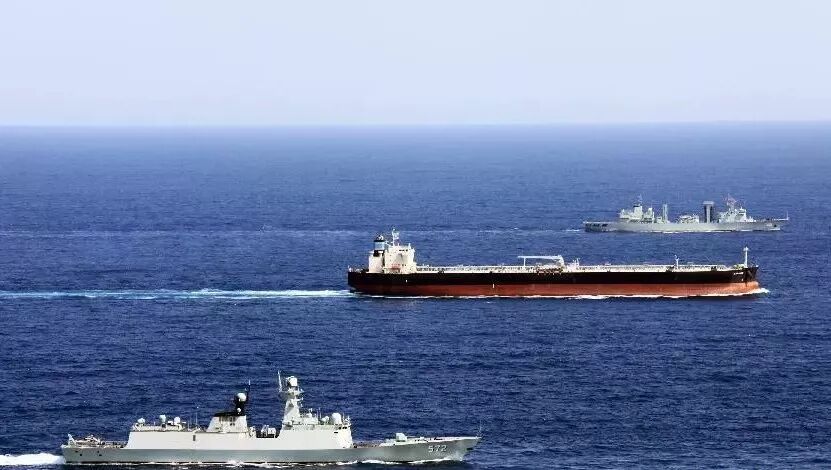▲ 中国海军在亚丁湾海域为商船实施安全护送