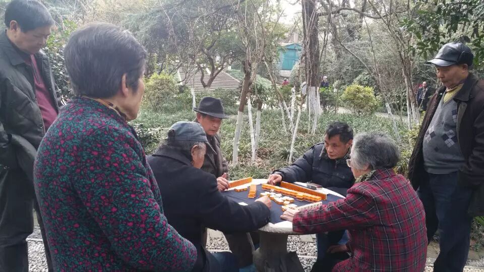蓝白老棉布往公园石桌一铺,盖住点点斑驳鸟粪,防冻的耳罩帽子戴上,老花镜架上,噶场的姿势端上,掏出金白沙压住计筹的扑克,便在人来人往的天寒地冻里又一次继续万里长城的革命友谊。