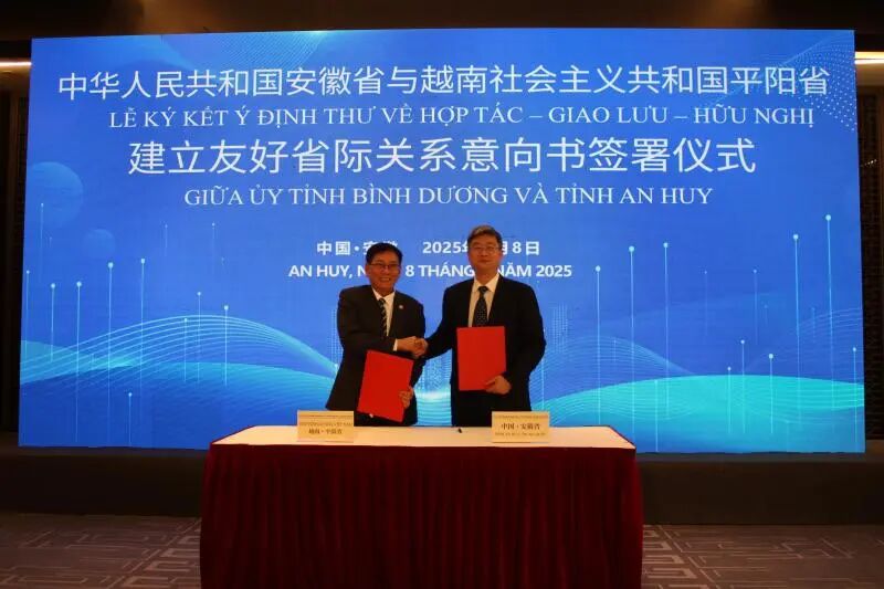 会见后,孙勇副省长和梅雄勇常务副主席签署了《中华人民共和国安徽省与越南社会主义共和国平阳省建立友好省际关系意向书 》。