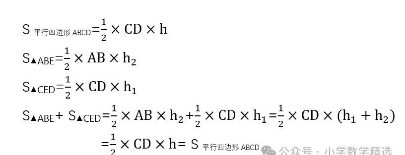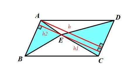 我们设平行四边形的高是h,两个三角形的高分别是h1和h2。
