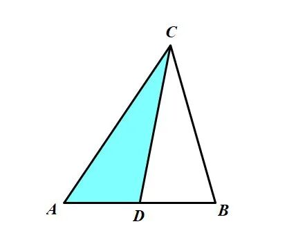如下图所示,在三角形ABC中,若D为BC的中点,则阴影部分面积是三角形ABC面积的一半。这个结论的证明非常简单,S??ABC=1/2×AB×h÷2,S??ADC=1/2×AD×h,因为AD=1/2AB,所以:S??ADC=1/2×S??ABC