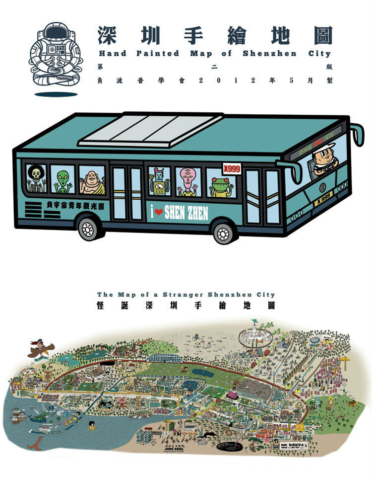 今年7月“负波普”刚刚完成的第四版“怪诞深圳手绘地图”,一反地图对建筑和道路的强调,铺陈城市的故事,诸如工业化、城中村拆迁、地产业发展和文化创意兴起等,也是一样的“脑洞异常性感”。